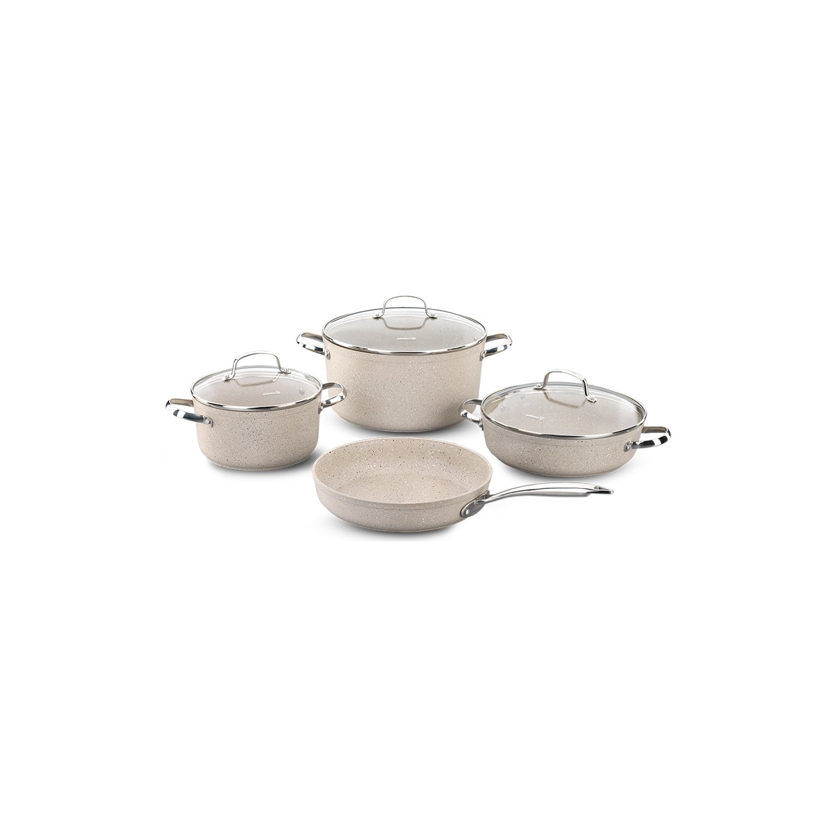 Korkmaz 7 Parça Granit Görünümlü PTFE Kaplamalı Tencere Seti – Doğal Geri Dönüşümlü Malzeme, 20-24-26 cm Ebatları