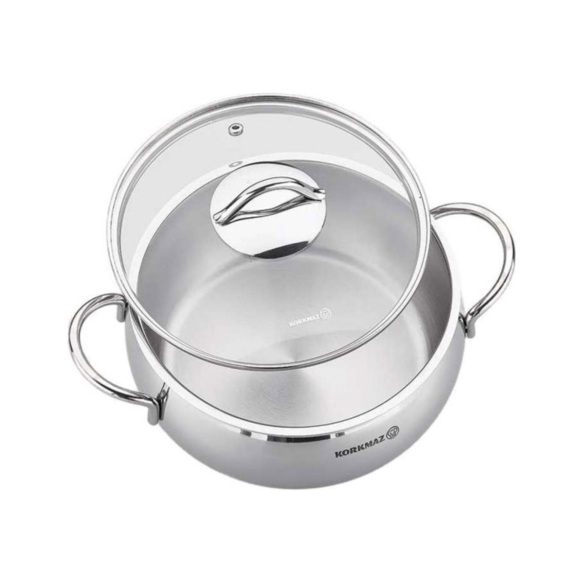 Korkmaz A1807 Tombik 8 Parça Tencere Seti 8 Parça Tencere Seti Ölçüler: Tencere: 16×9 cm / 1.8 lt Tencere: 20×10 cm / 3.5 lt Tencere: 24×12 cm / 5.5 lt Kısa Tencere: 24×8 cm / 3.6 lt 18/10 Cr-Ni paslanmaz çelik Homojen ısı iletimi sağlayan süper capsül taban Ergonomik, el yakmayan, özel güvenli paslanmaz çelik kulp ve tepeler Parlaklığını koruyan özenle polisajlanmış dış yüzeyler Özel temperlenmiş cam kapak Solar Base sistem İndüksiyon uyumlu Susuz ve yağsız pişirmeler için uygundur. Endüstriyel kullanım için idealdir. İlk kullanımdan önce sıcak su ve bulaşık deterjanı ile temizleyiniz. Susuz ve yağsız olarak içinde gıda maddesi olmadan ocak üzerinde uzun süre bırakmayınız. Temizlik esnasında sert metal fırçalar kullanmayınız. Bulaşık makinasında temizlenebilir. Tombik tencere setinin paslanmaz çelik kulplarında rahatlığı ve ısıya dayanıklı cam kapakları ile pişirme konforunu hissedin. İndüksiyon dahil her türlü ocak üzerinde en yüksek ısı transferi sağlayan SOLAR BASE sistemi sayesinde maksimum zaman ve enerji tasarrufu sağlar.