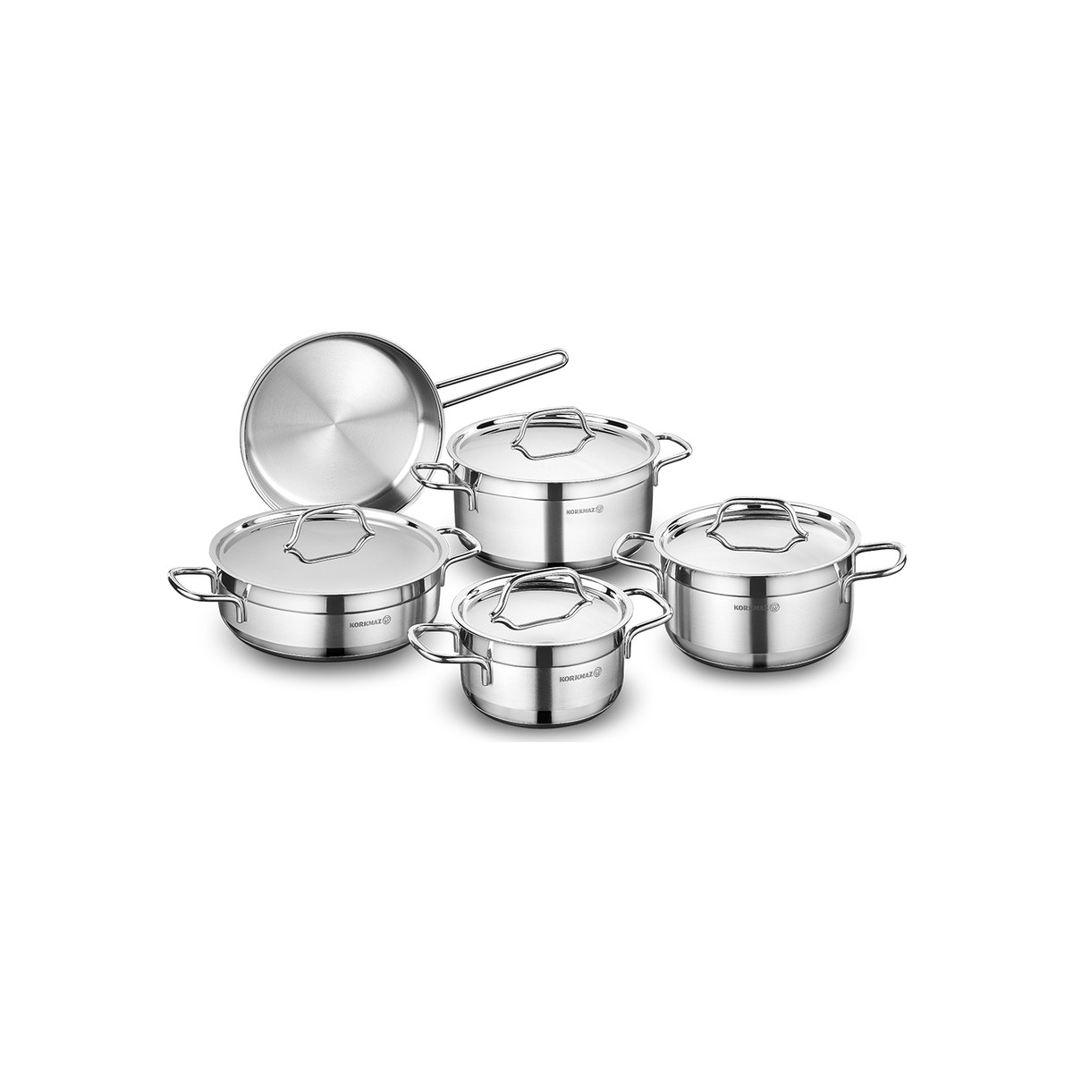 Korkmaz Alfa Derin Tencere Seti 9 Parça Inox Çelik Kaplama Ergonomik Tasarım