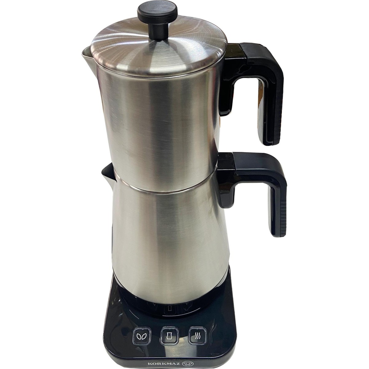 Moderna elektrikli çaydanlık takımı, tek seferde 25 bardaklık çay yapma kapasitesi ve susuz kaldığında otomatik kapanma özelliğiyle misafirlerinize lezzetli çay yaparken güvenliğinizi düşünüyor.