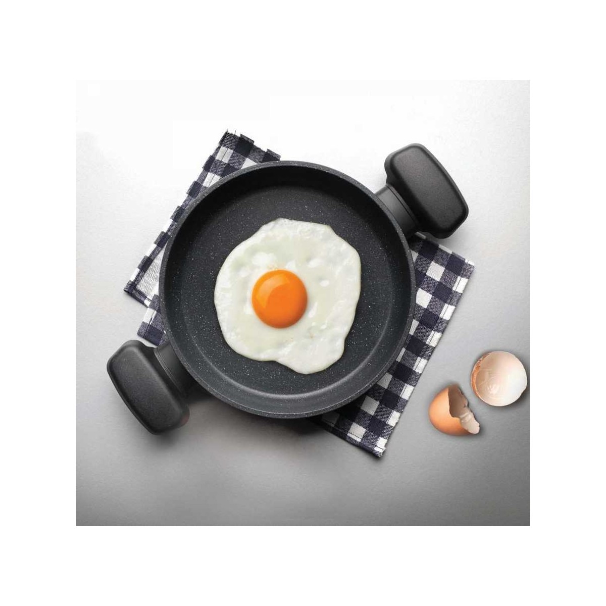 Korkmaz Ornella Granit Yumurta Sahanı 20 cm – Çizilmeye Dayanıklı Volkanit Görünümlü PTFE Kaplama, Siyah Renk