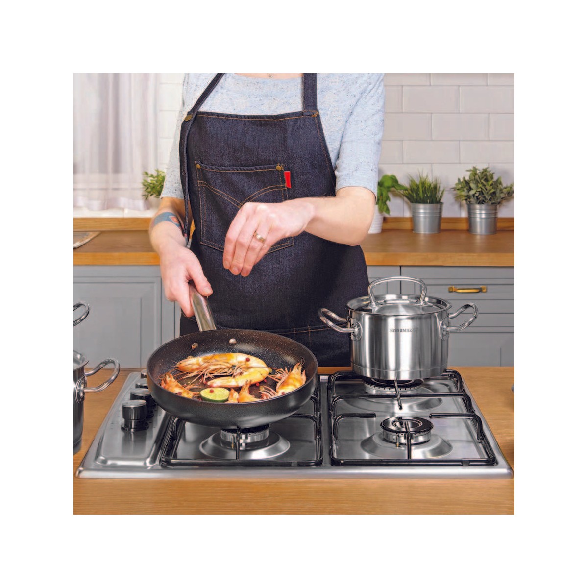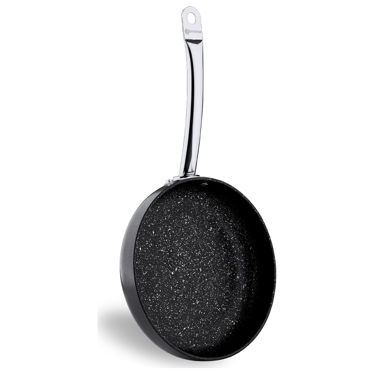 Geri dönüşümlü, tamamen doğal malzemeden, çevre dostu teknoloji ile üretilen Proline Nero çizilmeye karşı ekstra dirençli volkanit görünümlü PTFE kaplama ve yüksek ısıya dayanıklı silikon dış kaplama ile çok az yağ kullanarak lezzetli yemekler yapar.