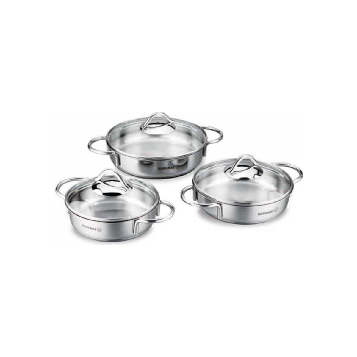 Korkmaz Tombik 6 Parça Omlet Tencere Seti – 18/10 Cr-Ni Paslanmaz Çelik, Cam Kapaklı, 16-18-20 cm Boyutları