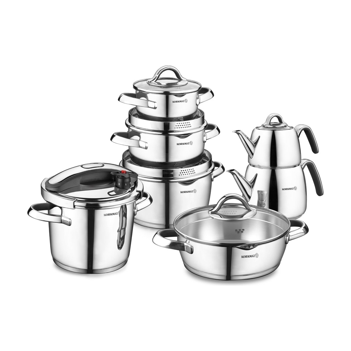 Korkmaz Vertex Çelik Tencere Seti Çeyiz Seti 15 Parça Hiper Set