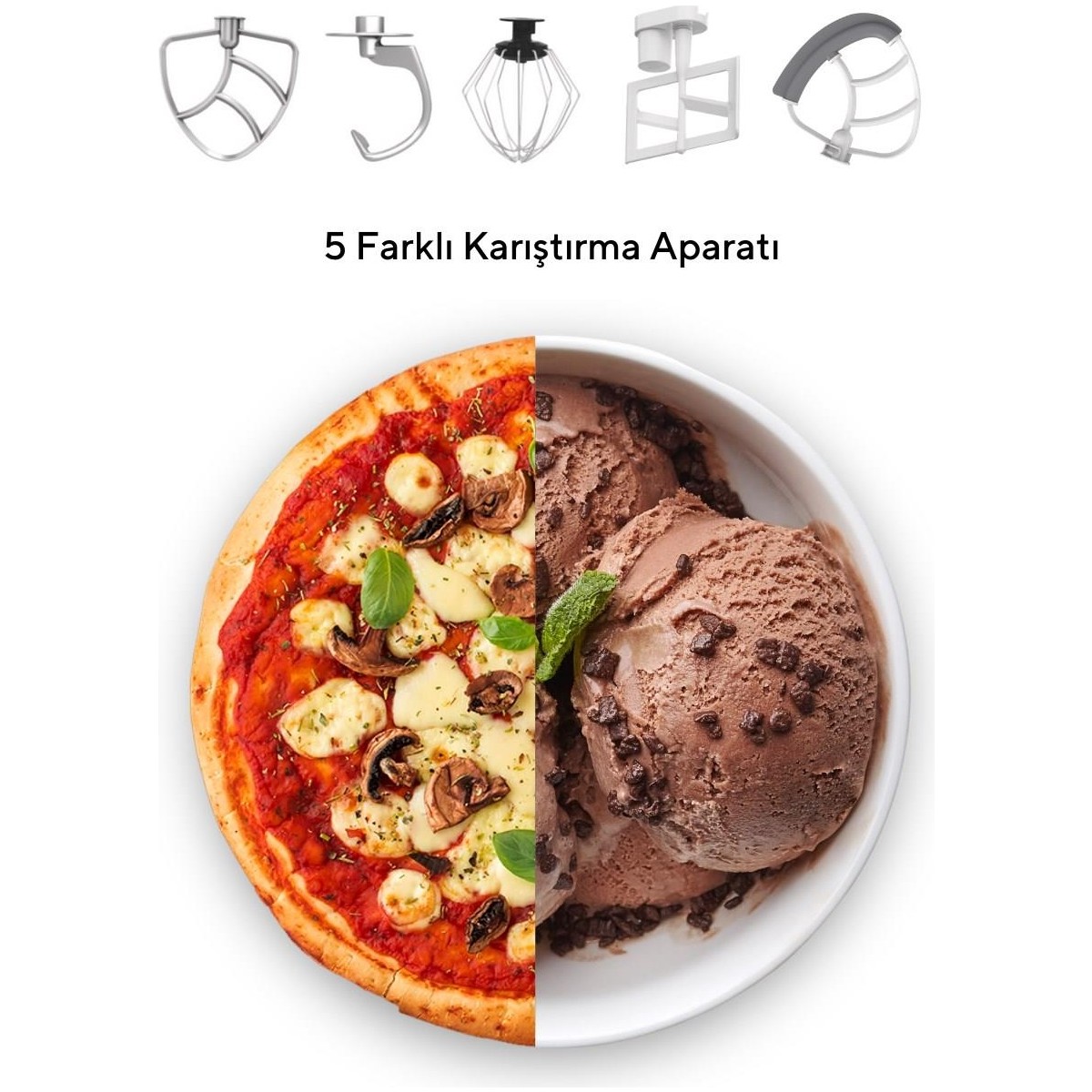 4 Farklı Aparat: Çırpma Aparatı, Karıştırma Aparatı, Hamur Yoğurma ve Dondurma Yapma Aparatı