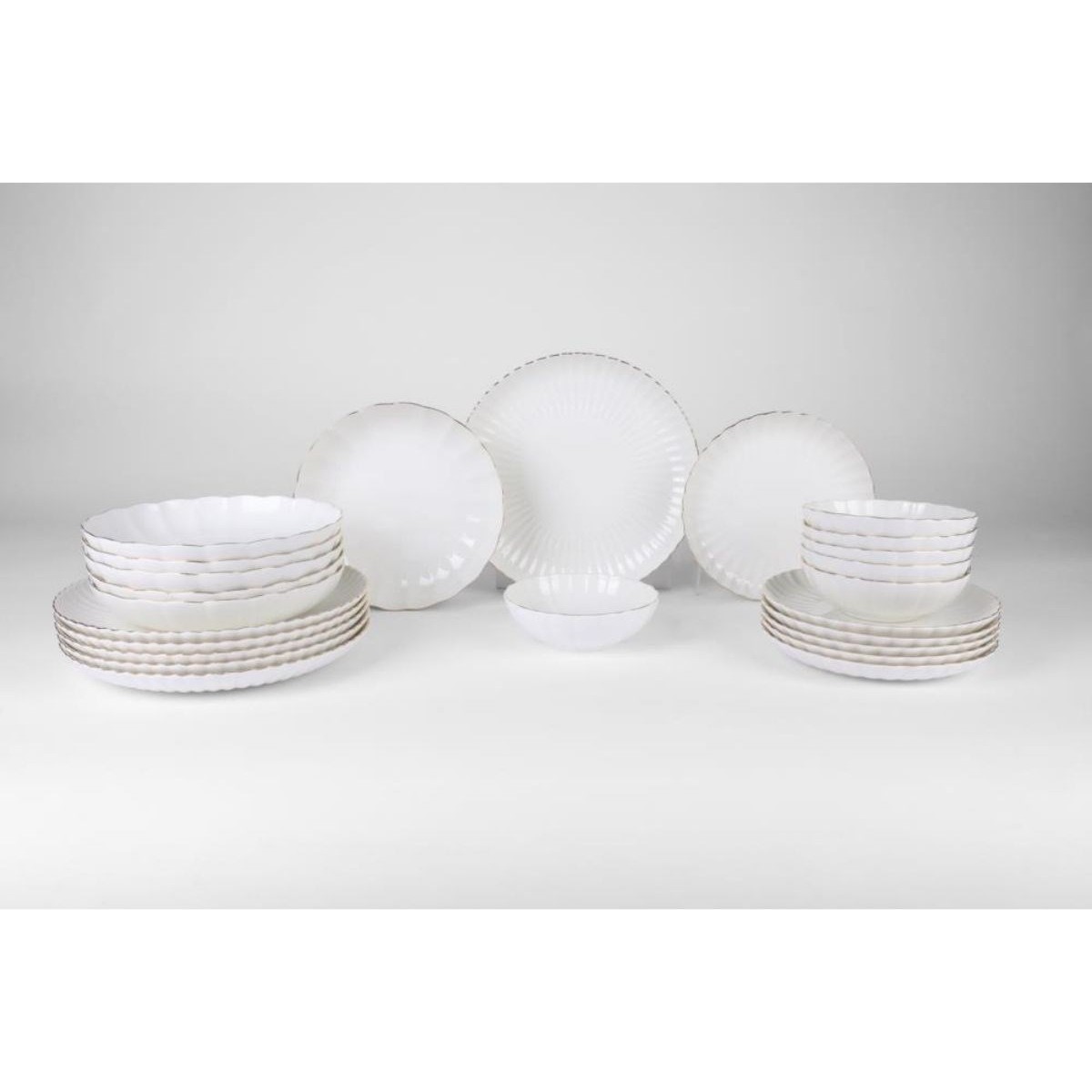 Kütahya Porselen Bone Luz Form Yemek Takımı Altın 24 Parça 6 Kişilik 6 Adet 27 cm Servis Tabağı, 6 Adet 20 cm Çukur Tabak, 6 Adet 21 cm Pasta Tabağı, 6 Adet 15 cm Kase’den oluşmaktadır. Elde yıkama tavsiye edilir.Zarifliği platin detaylarında yansıtan, eşsiz tasarımıyla öne çıkan Bone Luz Yemek Takımı, sofralarınıza şıklık katmak için altın ve platin zarafetini buluşturuyor. Şimdi bu eşsiz tasarımın sahibi olun ve sofralarınıza ayrıcalık katın!