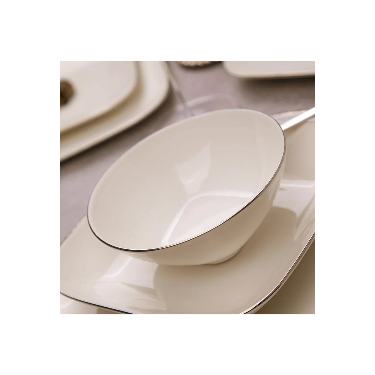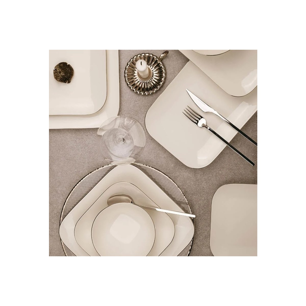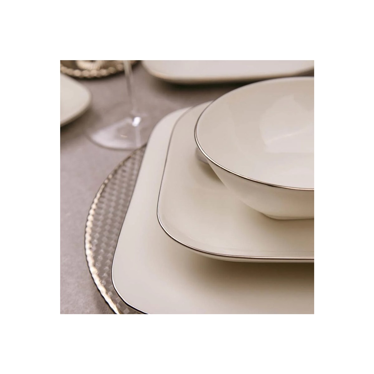 Kütahya Porselen Bone Minas 51 Parça 12 Kişilik Krem Yemek Takımı – Düz ve Sade Platin Fileli Tasarım