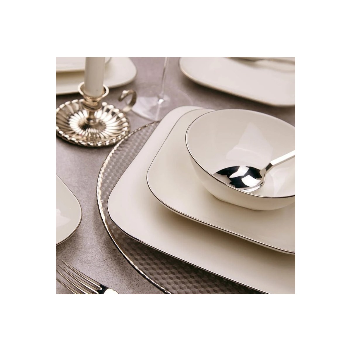 Kütahya Porselen Bone Minas 51 Parça Yemek Takımı Platin Fileli
