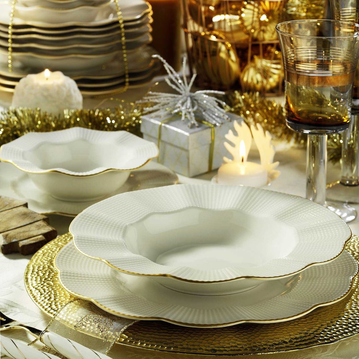 - Günlük kullanım için de uygun olan tasarımı ile dikkat çeken Kütahya Porselen Milena yaldızlı yemek takımı, krem rengi ile ortama sakinleştirici bir hava katar.