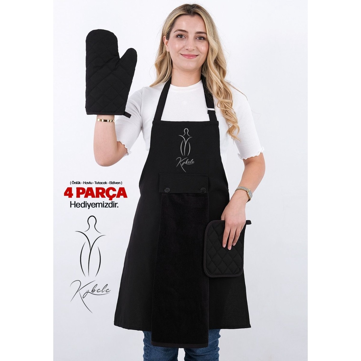 4 Parça Mutfak Önlüğü (Eldiven, Tutacak, Havlu, Önlük)