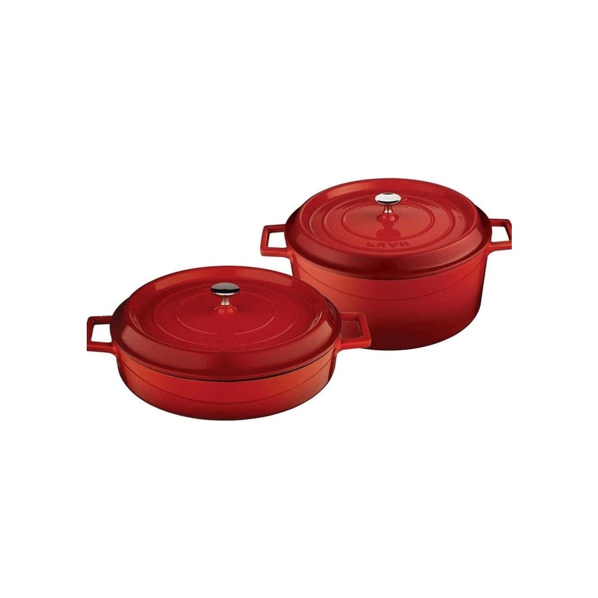 Lava Derin Yuvarlak 24 cm + Sığ Yuvarlak Döküm Kırmızı Tencere 28 cm 2’li