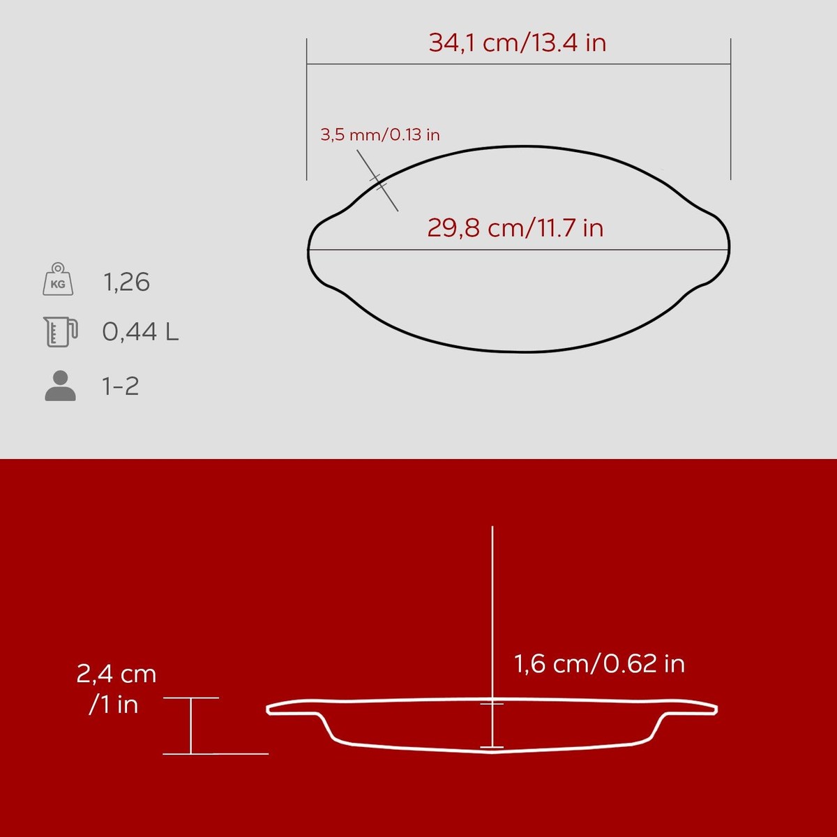 Lava Döküm Balık Tabağı Döküm Demir Yekpare Kulplu 15X29CM.-BORDO