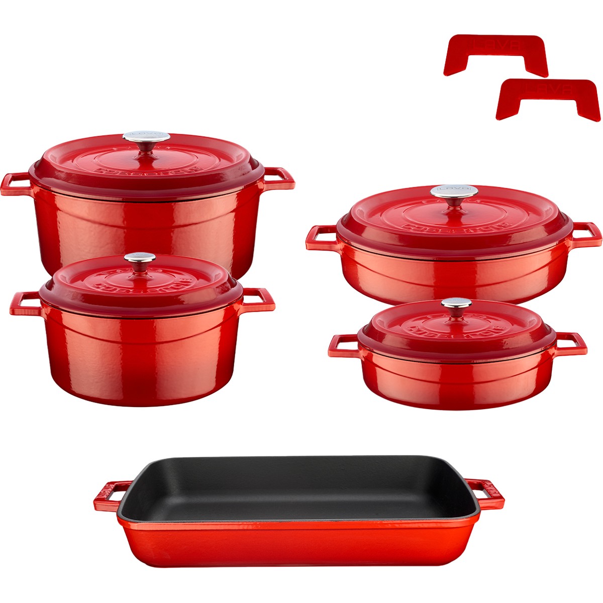 Lava Döküm Beşli Tencere Tava Seti Trendy-Kırmızı