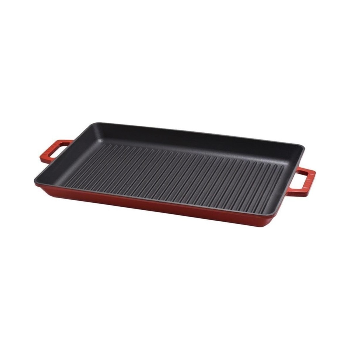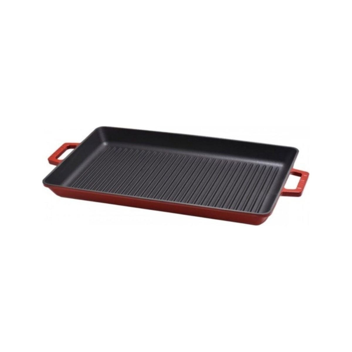 Lava Döküm Dikdörtgen 26×32 cm Metal Kulplu Izgara Tava-Kırmızı