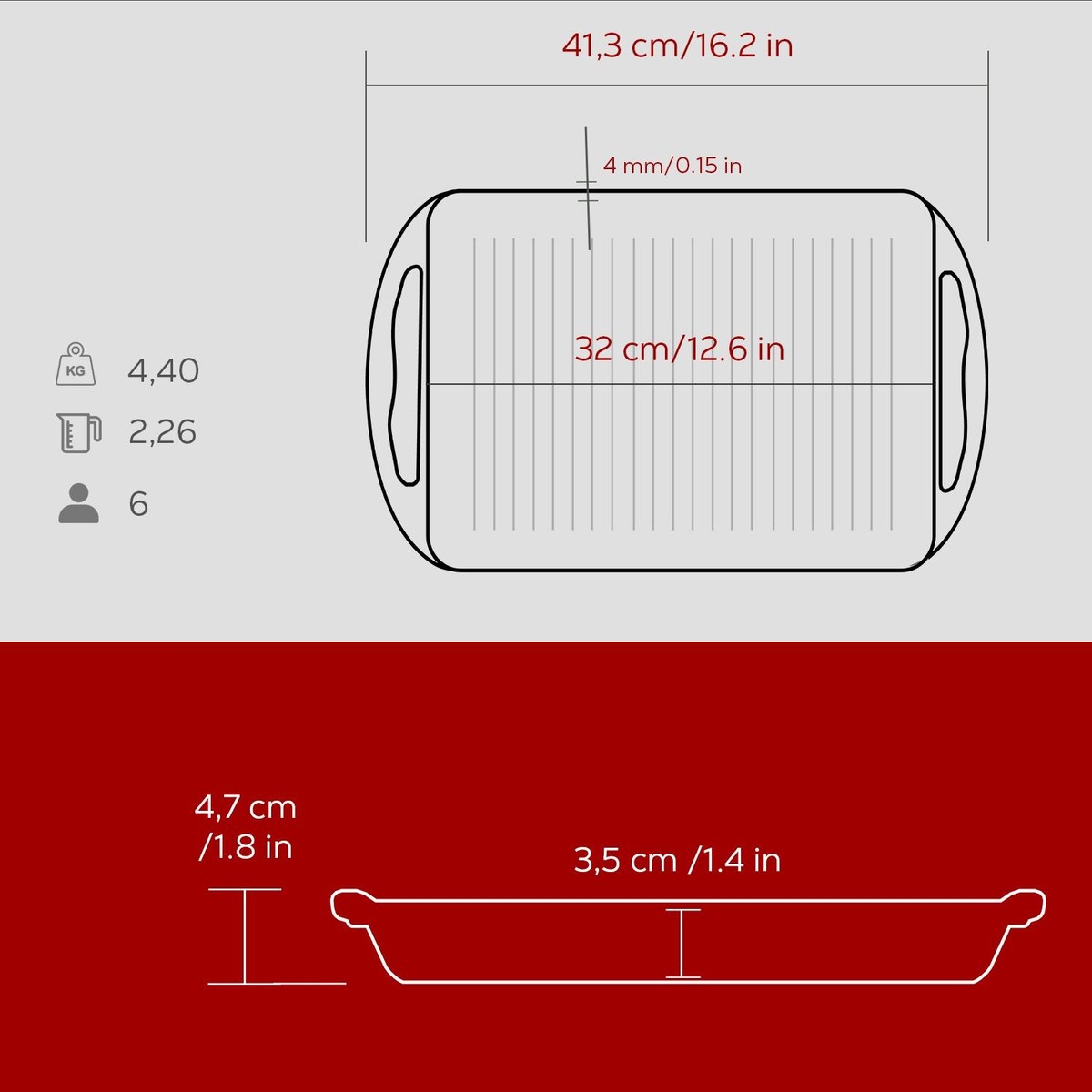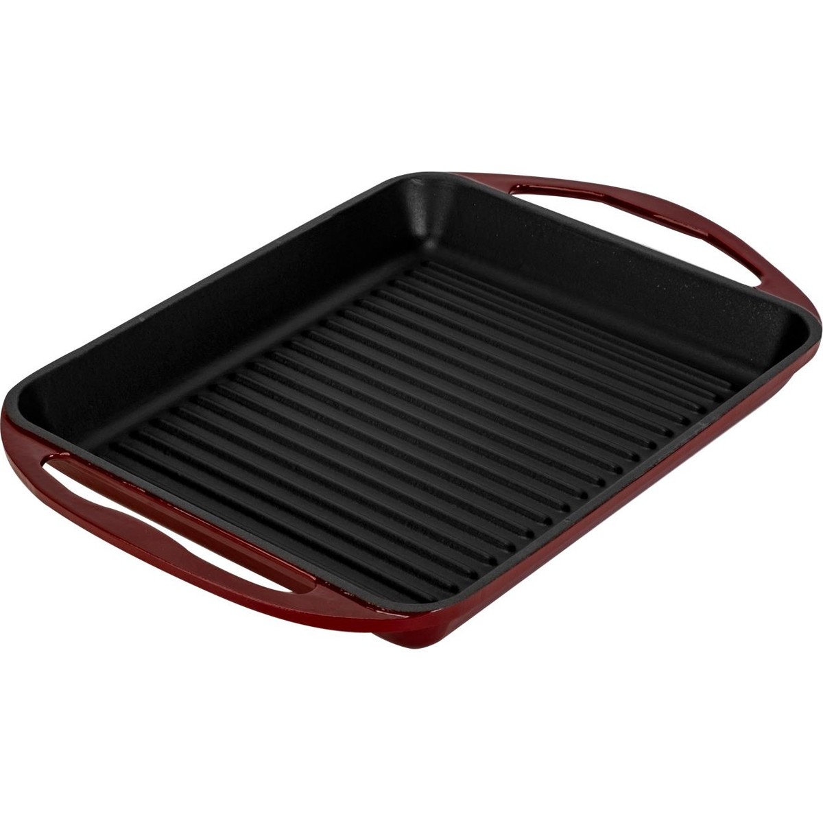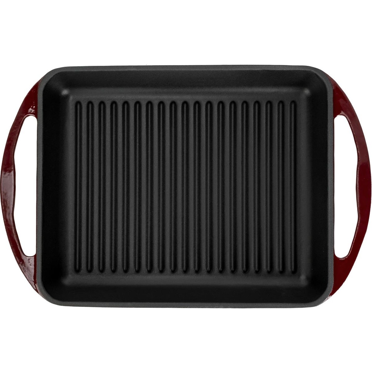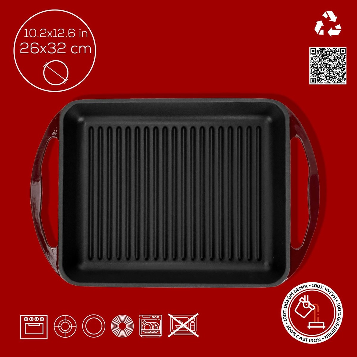 Lava Döküm Dikdörtgen Izgara Tavası Döküm Demir Yekpare Çift Kulplu Ölçü 26X32CM.-BORDO