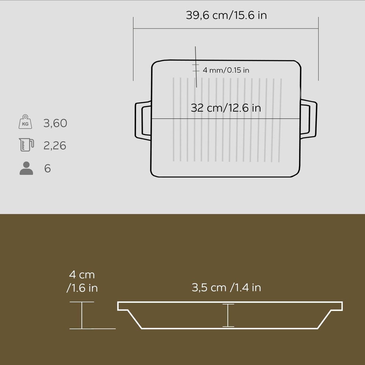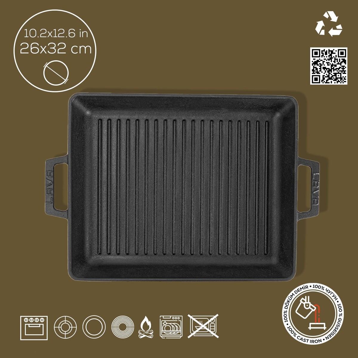 Lava Döküm Dikdörtgen Izgara Tavası Döküm Demir Yekpare Çift Kulplu Ölçü 26x32cm.