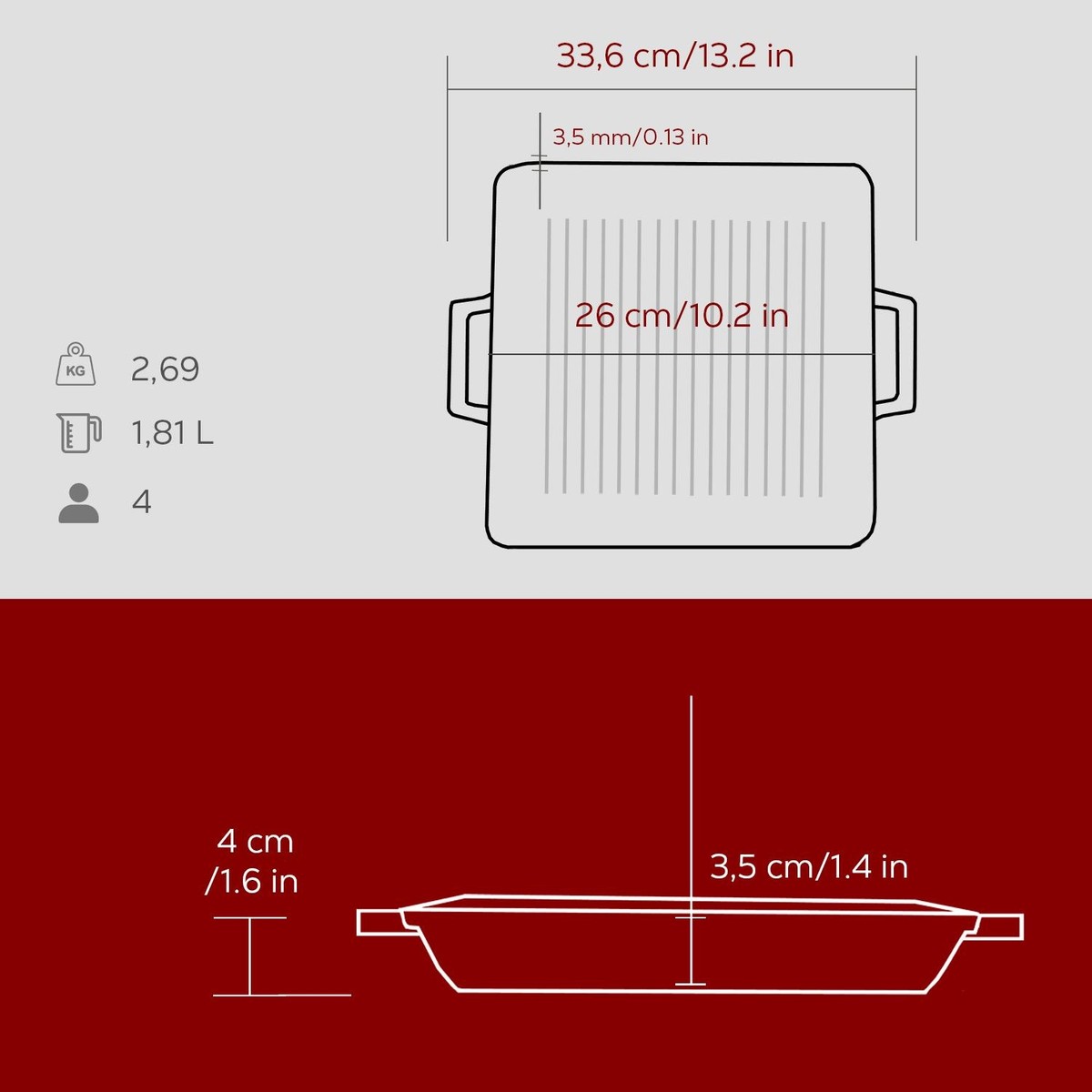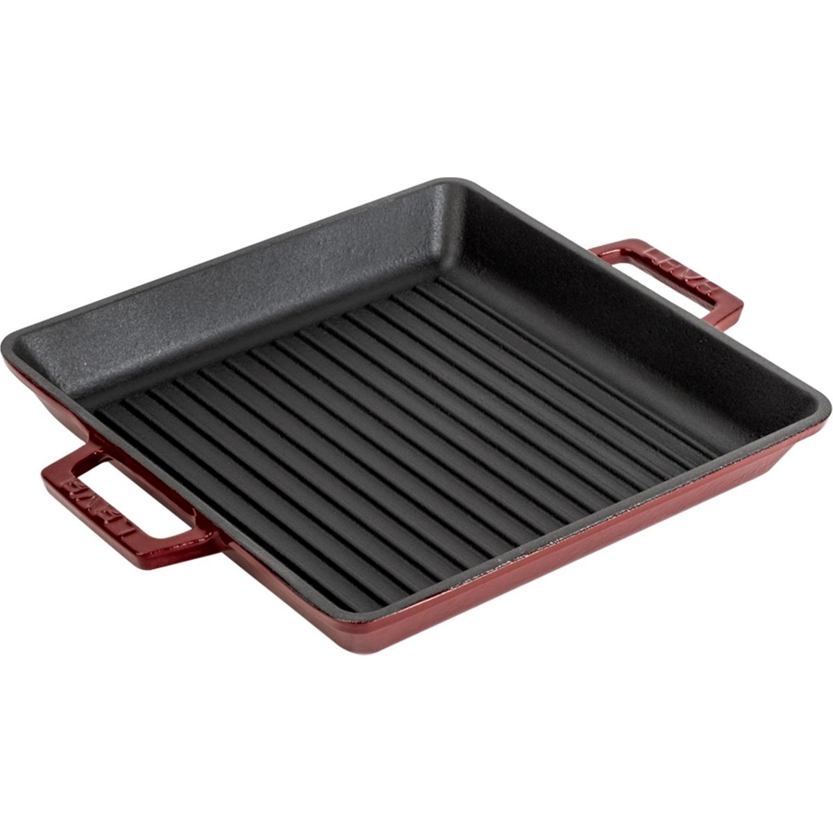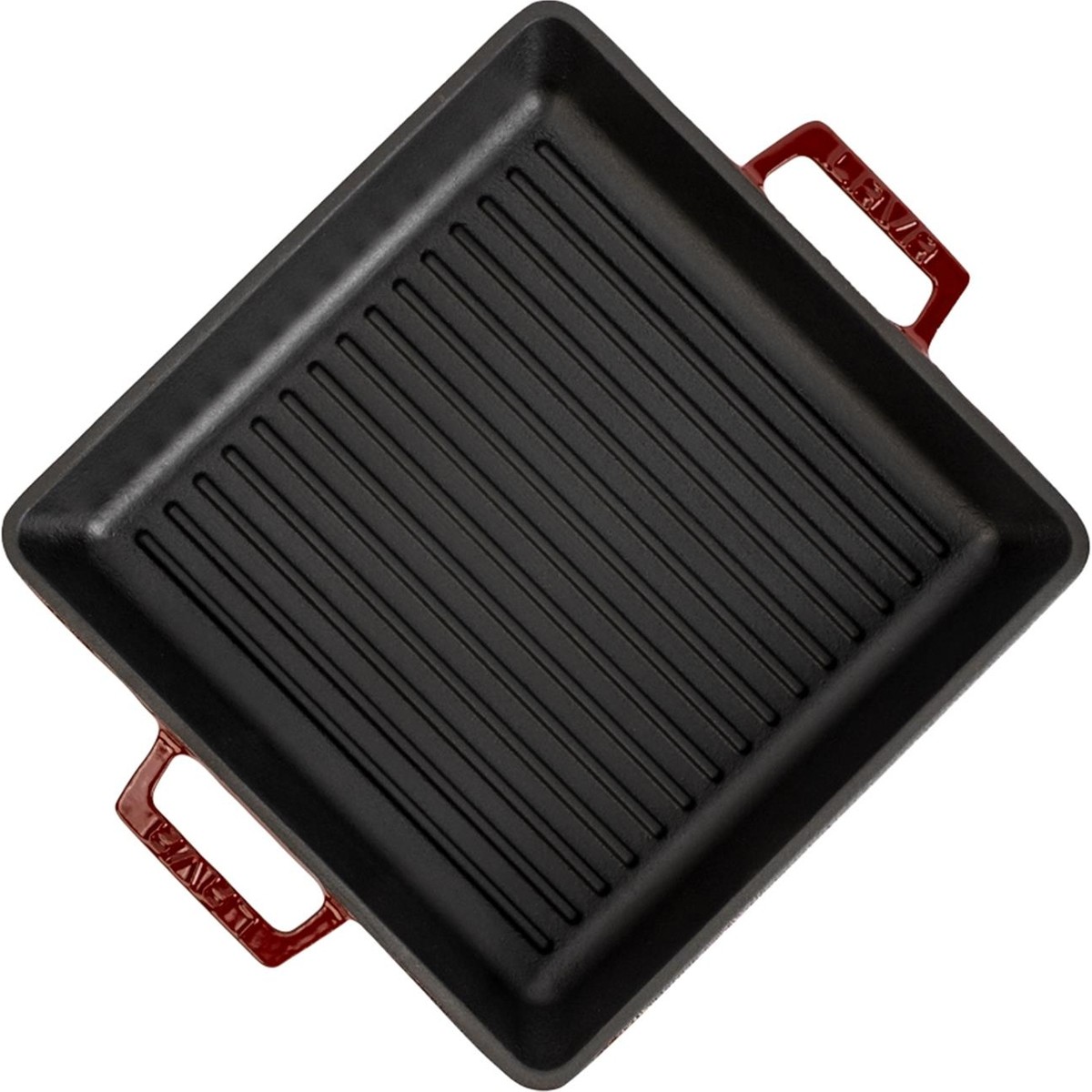 Lava Döküm Kare Izgara Tavası Döküm Demir Yekpare Çift Kulplu Ölçü 26X26CM.-BORDO