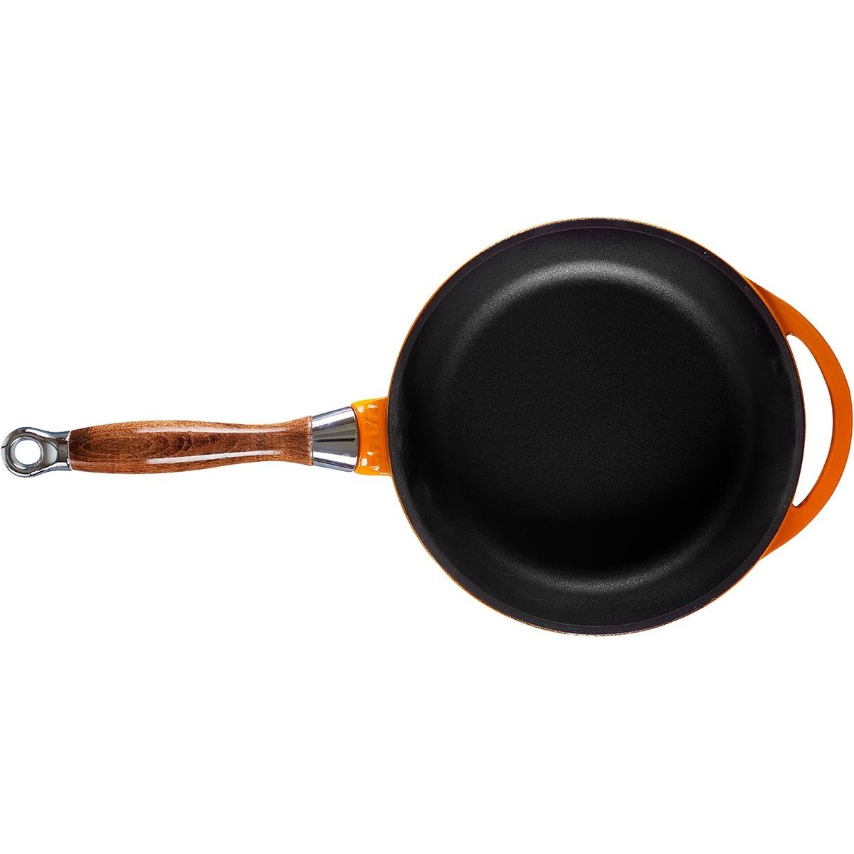 Frying Pan. Round. Ø 24cm. Cast Iron. Detachable Wood Handle.Enamel 3 Coat, 2 Fire.