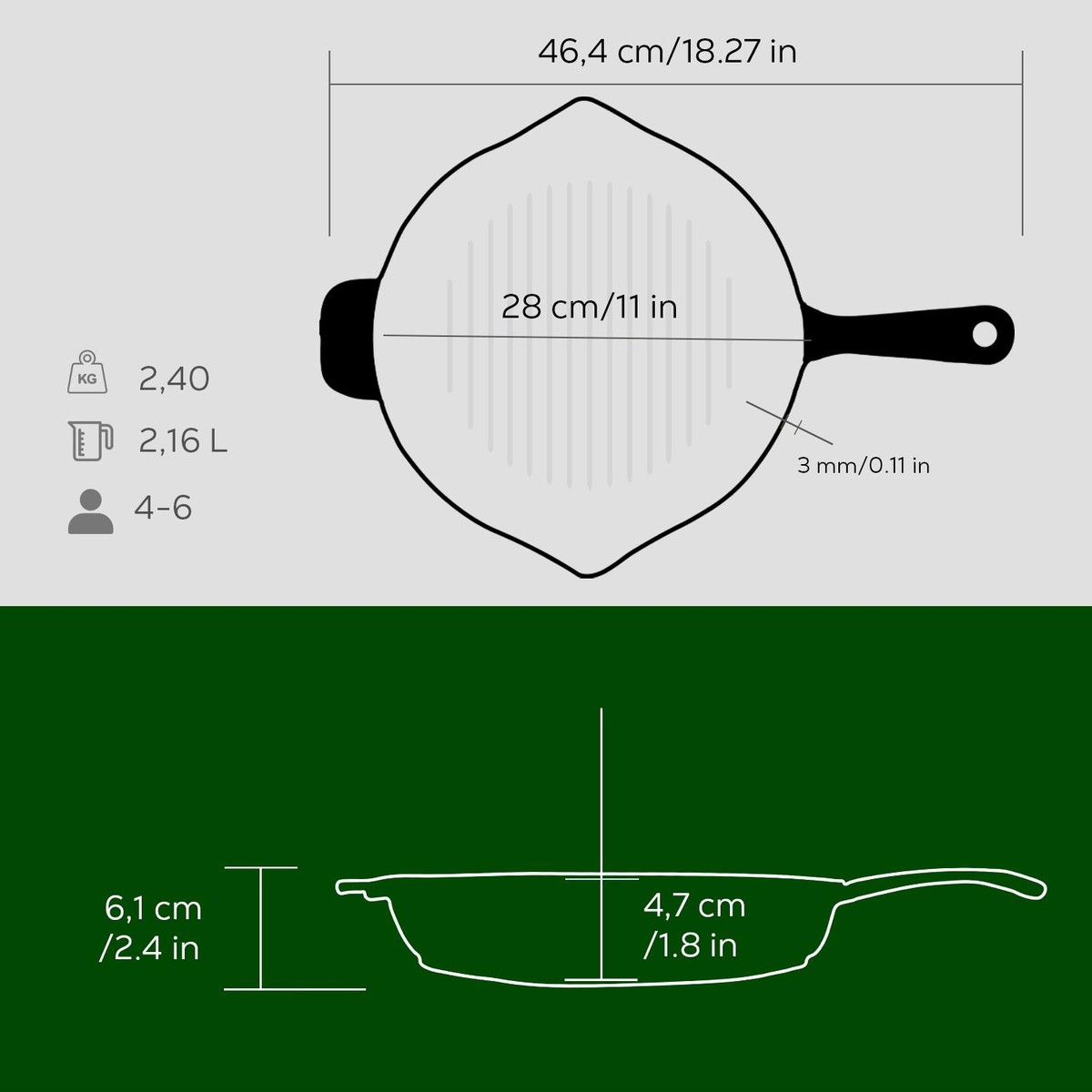 lava döküm yuvarlak ızgara tava döküm demir yekpare saplı çap(ø)28cm.