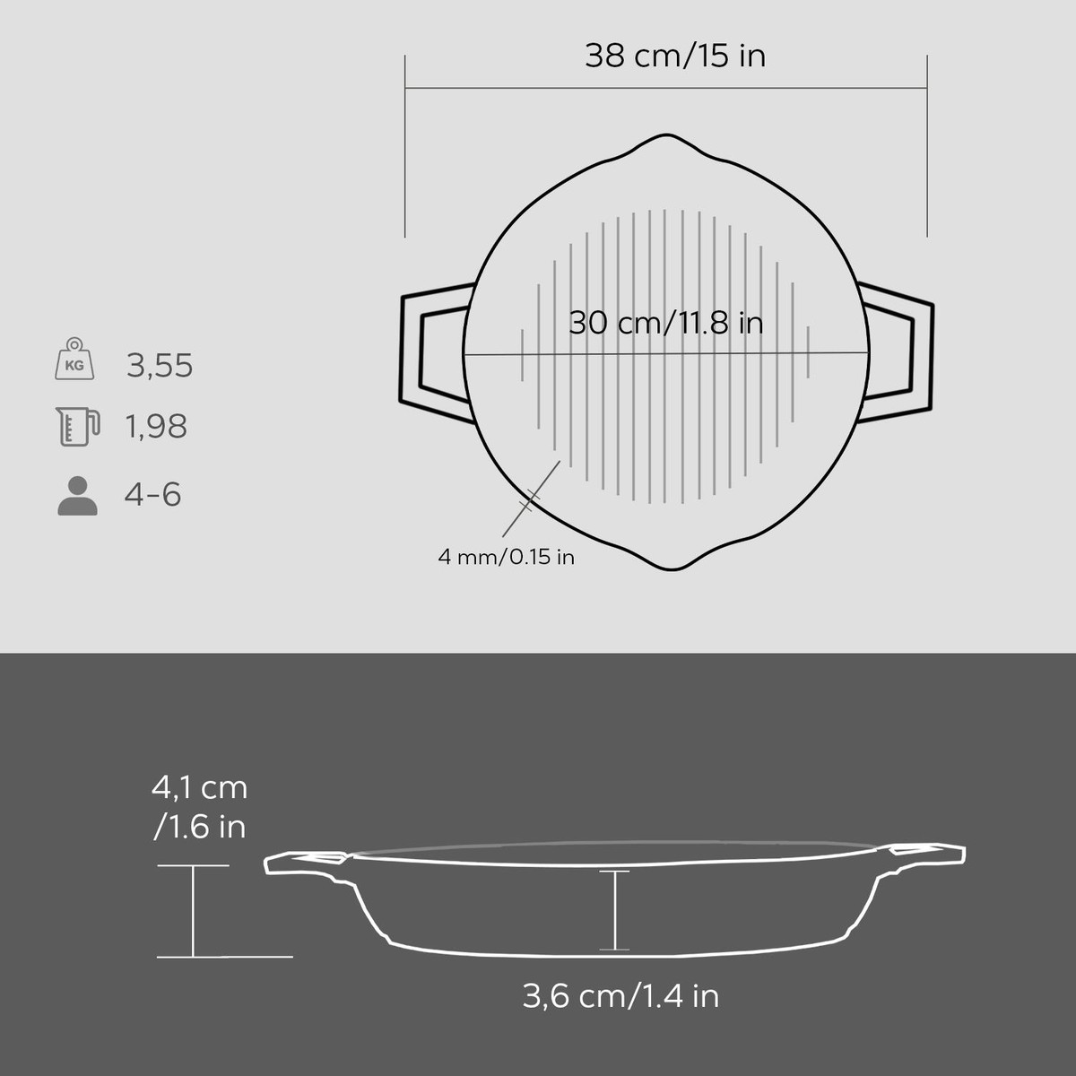 Ağır ve büyük. Evde ve piknikte kullanıyoruz. Küçük tüp üstüne koyup yapıyoruz. Mangal dan farksız lezzetli oluyor. Ki mangalın isi olmadığı için daha ssğlıklı dumansız pişiyor. İster tüp ile ister odun ateşi ile pişirin. Farketmez. Koca mangal kömür vb taşımak yerine bunu kullanıyoruz. Odın ile pişirecek seniz iki taş arasında dahi oluyor. Çok kullanışlı ağır ve oldukça büyük genişlikte bir tava. Izgara sevenler için ideal. Yıkaması da kolay çizilecek derdi yok ıslayıp telleyince yağ akıp gidiyor. Et, tavuk, balık, şiş, köfte, domates, biber…herşeyi denedik çok çabuk ve lezzetli ve de sağlıklı pişiriyor.