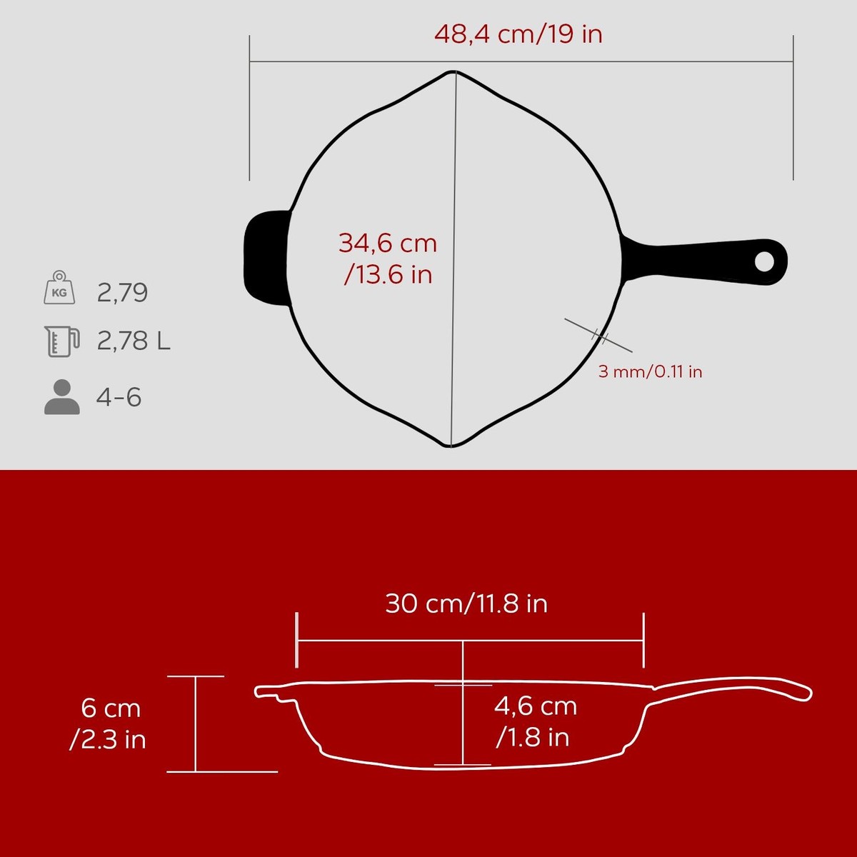 LAVA Döküm 30 cm Yuvarlak Kızartma Tavası ile büyük gruplar için et ve balık kızartabilir, sebze soteleyebilir veya dünya mutfaklarından esinlenerek yaratıcı bir kızarmış pirinç yapabilirsiniz. Aynı zamanda, mühürleme yöntemi ile mangal tadında lezzetler hazırlayabilir; pratik yağdanlıkları ile yağ ve su gibi sıvıları boşaltabilir ve etkileyici soslar servis edebilirsiniz.