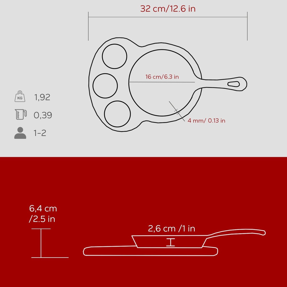 Lava Döküm Yuvarlak Kızartma Tavası Yekpare Saplı Kayın Ahşap Altlık. ÇAP(Ø)16CM. (Bu Ürüne Sos Kapları Dahil Değildir)-Bordo