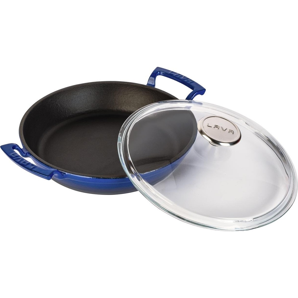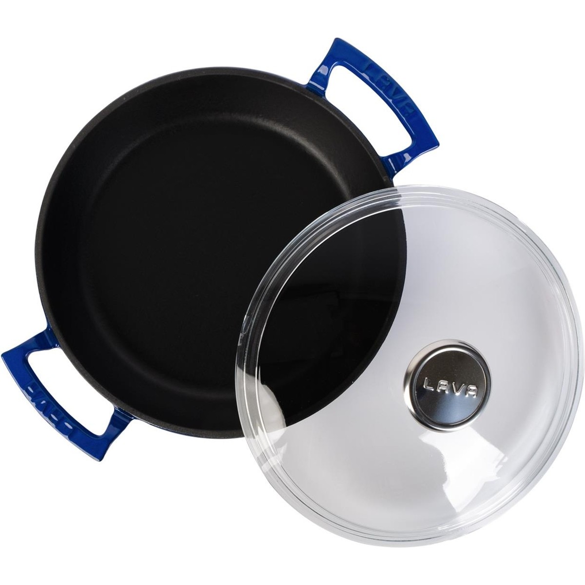 Lava Döküm Yuvarlak Sahan Cam Kapaklı Döküm Demir Yekpare Çift Kulplu Çap(Ø)24cm. – Mavi