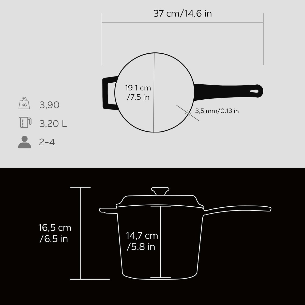 Lava Döküm Yuvarlak Sos Tenceresi. Döküm Demir Yekpare Saplı Trendy Serisi Çap(Ø18 Cm.