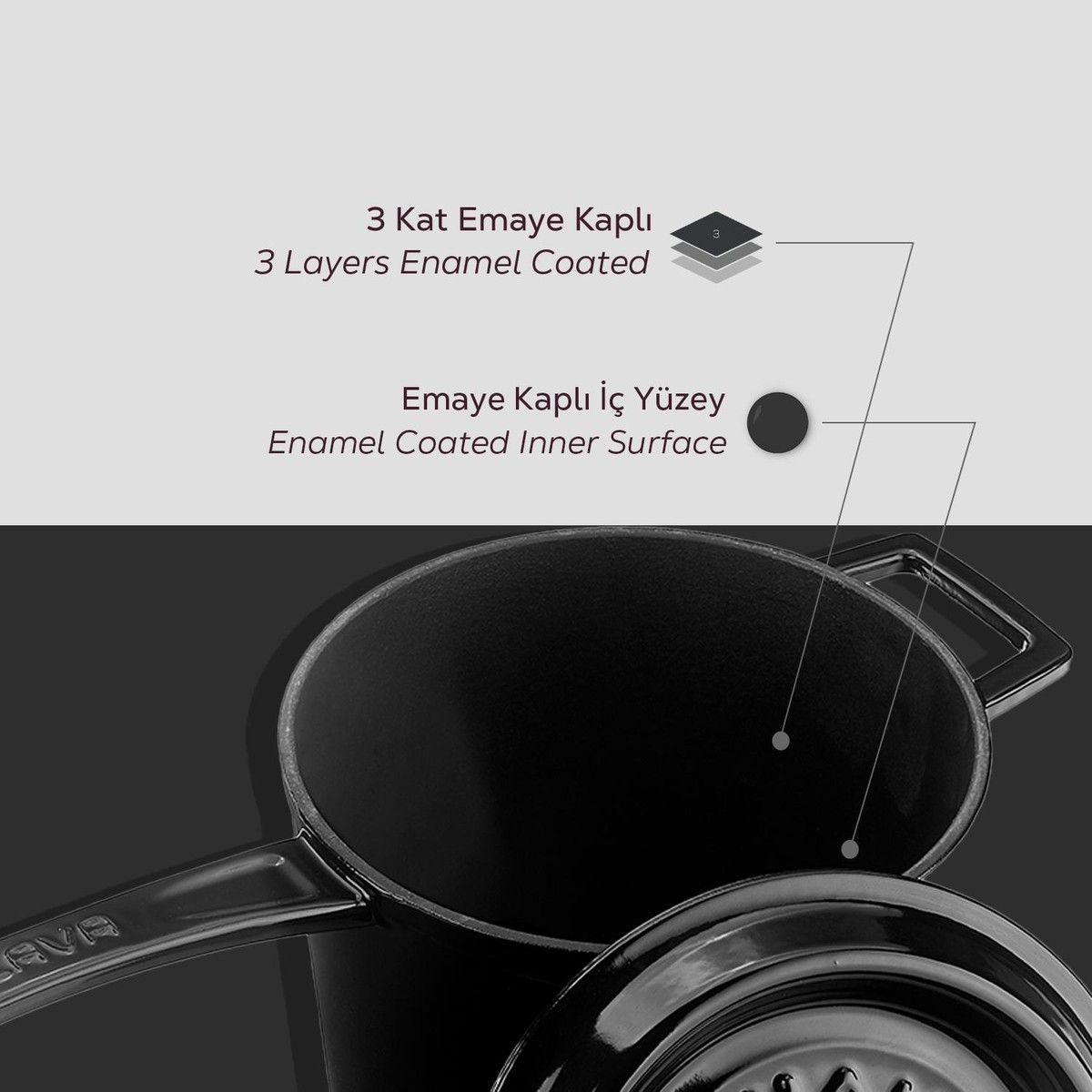Yüksek emaye kalitesi ve dayanıklılığı sayesinde LAVA’nız uzun yıllar vazgeçilmeziniz olacak. Emaye teknolojisi sayesinde LAVA’nızı gönül rahatlığıyla bulaşık makinesinde yıkayabilirsiniz; ancak deterjanlardaki kimyasallardan arındırmak amacıyla ek durulama yapmayı unutmayınız.