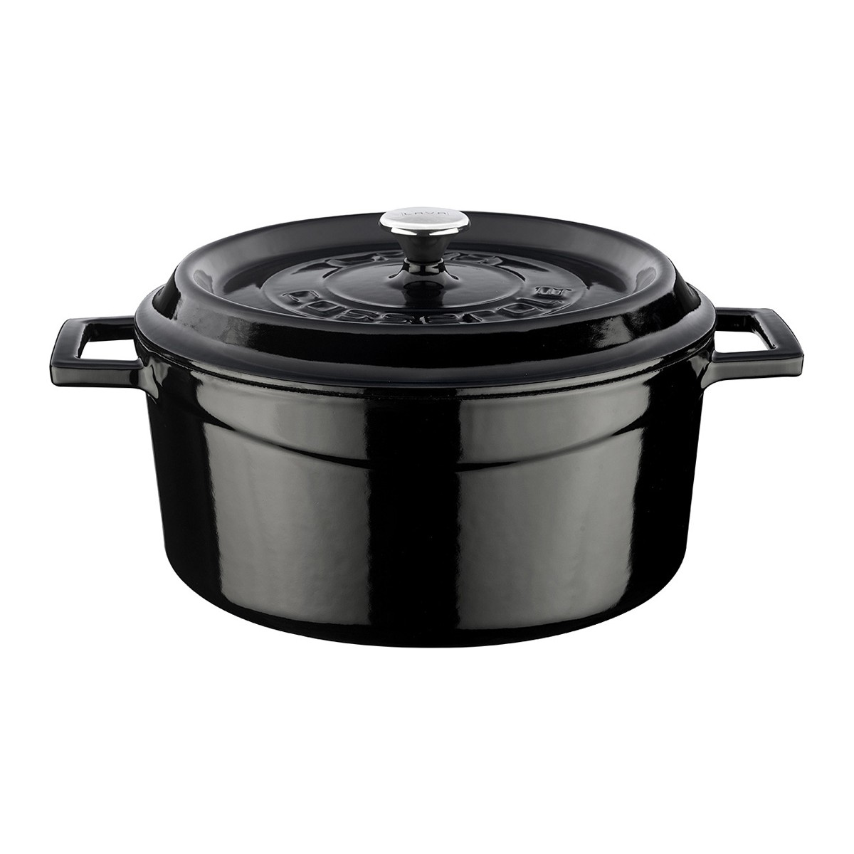 Tencere. Yuvarlak. Ø 24cm.Döküm Demir. Yekpare Kulplu. Emaye 3 Kat, 2 Fırın.Döküm Demir Trendy Kapak. Metal Tepe.