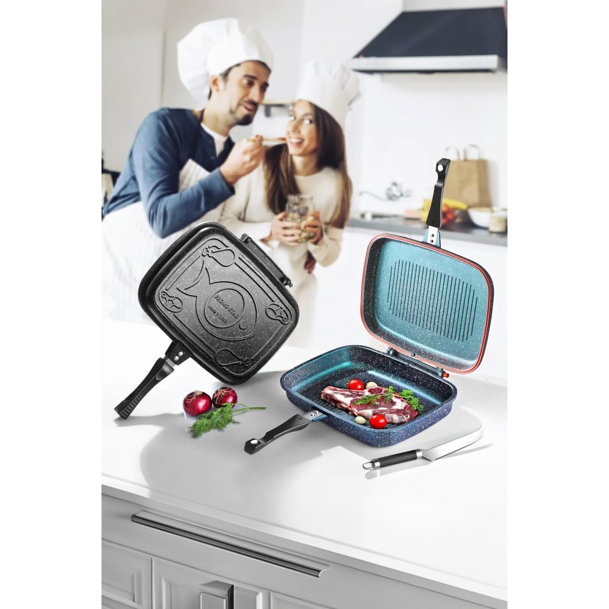 Lavonni 36 cm Çift Taraflı Döküm Balık Tavası