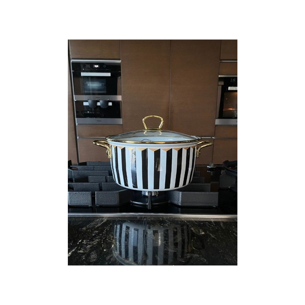 Le Murano Leydi Emaye Tencere Siyah Beyaz 22 cm