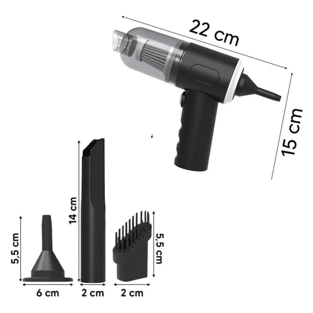 3in1 Araç Içi Kablosuz Şarjlı Mini El Süpürgesi Vakum ve Üfleme