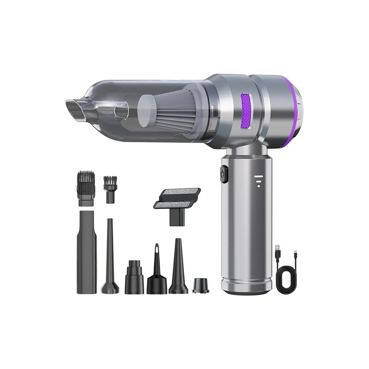 Araba Vakum Temizleyici, 16000PA Yüksek Güçlü Mini Elde Taşınabilir Şarj Edilebilir Kablosuz Hava Üfleme Cihazı, Ev ve Araba İçin Taşınabilir Kompresörlü Hava Püskürtücü (Gümüş Mor),PCMOS