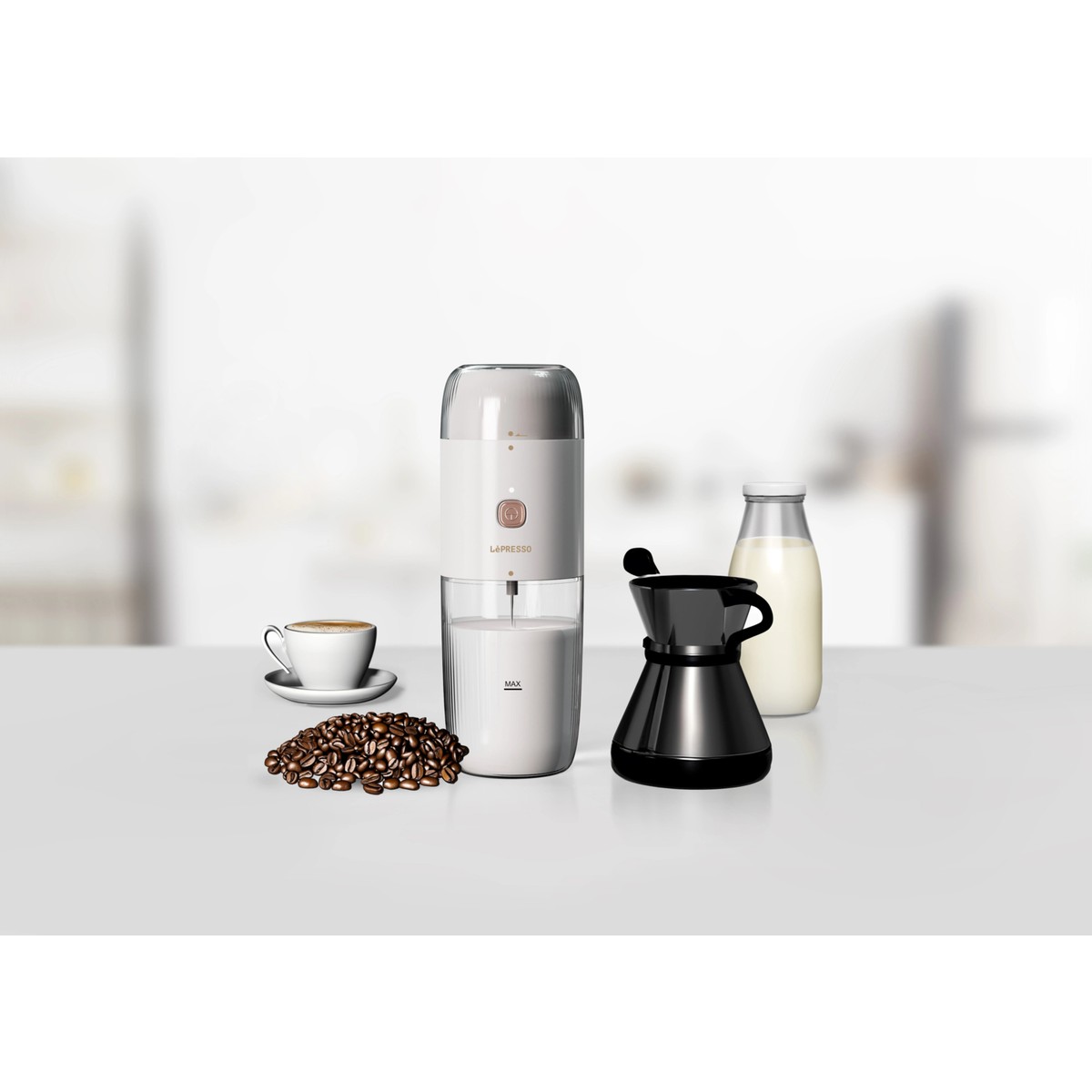 LePresso 2’si 1 Arada Kablosuz Kahve Öğütücü ve Süt Köpürtücü, Şarjlı Taşınabilir Tasarım