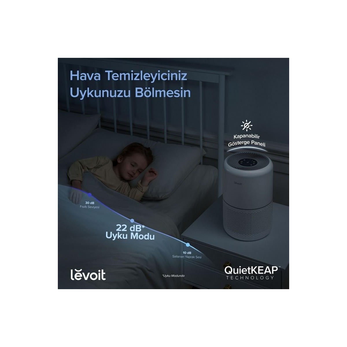 Temiz havanın tüm alanınızda dolaşmasını sağlayın ve yer açın ve uyku kalitenizi koruyun. Düşük gürültü seviyeleri ve ekran ışıkları açık ya da kapalı istediğiniz şekilde ayarlayın.