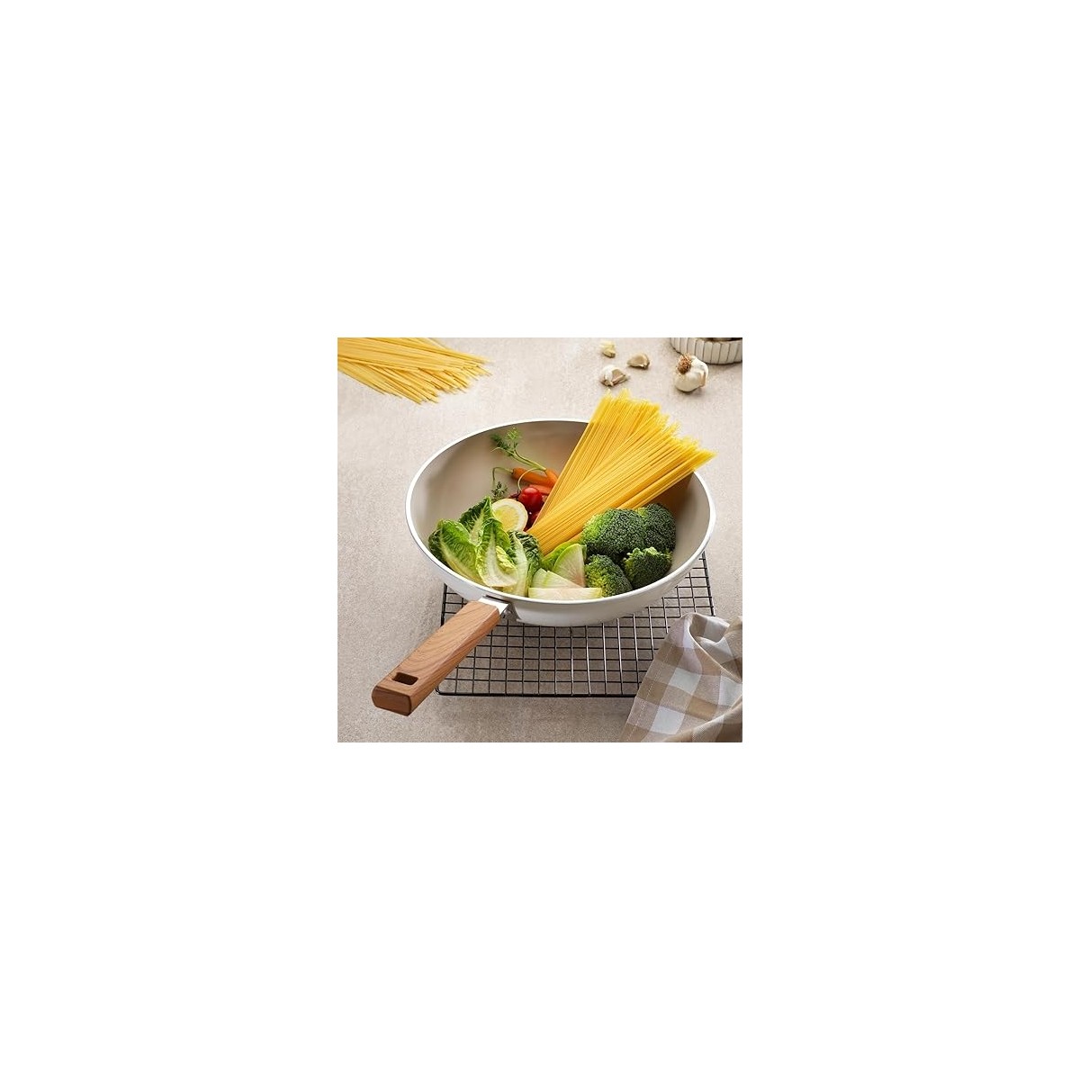 Ceramoni Seramik Wok Tava 28 Cm-Krem