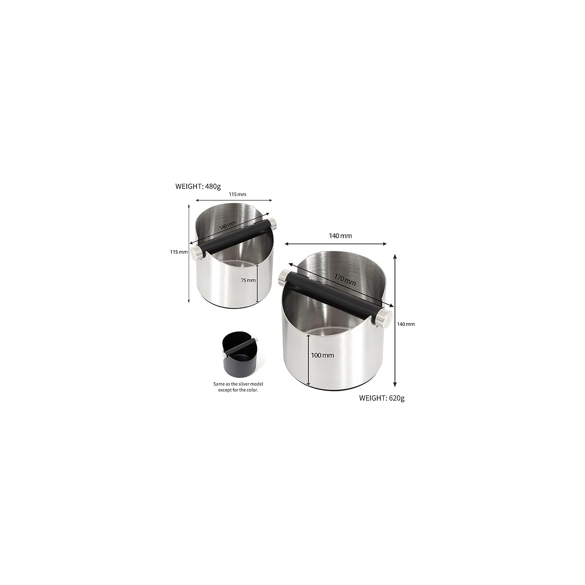 Kahve Telvesi Kutusu – Bir knock kutusu, evde iyi espresso yapmak için ayrılmaz bir şey değildir, ancak işleri verimli ve düzenli tutar. Harcanan espresso disklerini bir yakalama kutusuna atmak için tasarlanmıştır, portafilter sepetinizi bir sonraki atışınız için sıfırlamak. Basit ve Pratik Tasarım – Derin bükülmüş tasarım, kahve cürufunun sıçramasını kolaylaştırmazken, eğik ağız daha rahat kullanmanızı sağlar. Güçlü ve sağlam – Tabanın alt kısmı kaymaz kauçuk ayakla donatılmıştır ve böylece kutunuzun baskı altında kalmasını sağlar. Çıkarılabilir çapraz çubuk – Çıkarılabilir paslanmaz çelik kauçuk çapraz çubuk, portafiltrenizi bir trambolin gibi uçurmayacak şekilde sönümlenmiş, ancak sağlam bir vurma yüzeyi sağlar. İki Uygun Boyut Mevcuttur – Knock box kahve telvesinin boyutu çoğu espresso makinesinin altında saklamak için mükemmeldir. Kapasite, çok sık boşaltmanıza gerek kalmayacak kadar büyüktür.