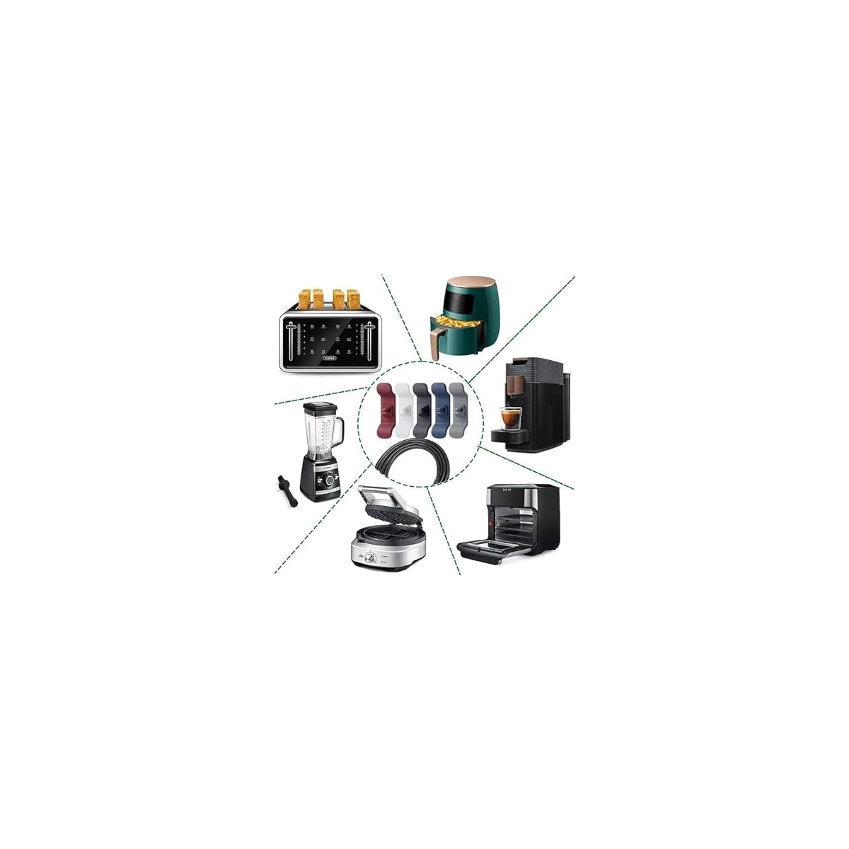 Home 6 Adet Yapışkanlı Airfrey Tost Makinesi ve Küçük Mutfak Aletleri Için Kablo Düzenleyici, Pratik ve Temiz Görünüm Sağlayan, Kolay Montajlı Kablo Yönetim Seti