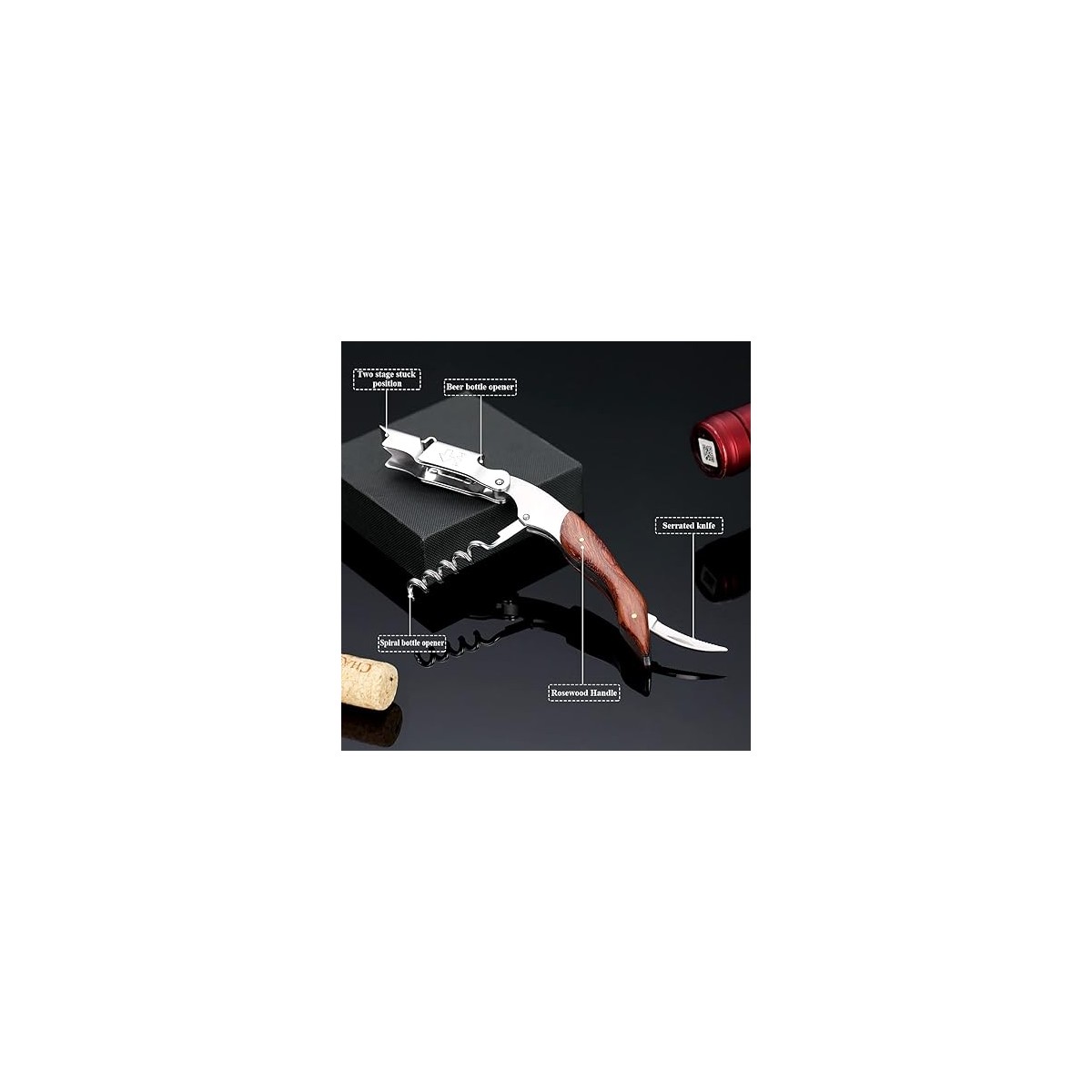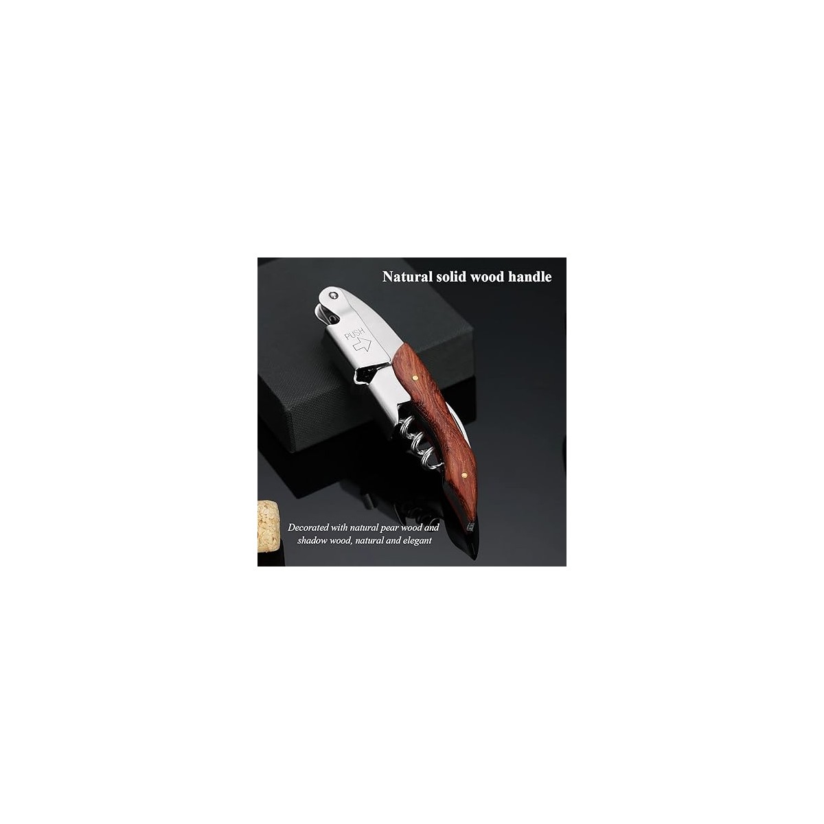 Şişe Açacağı Folyo Kesici ile Şarap Açacağı, Paslanmaz Çelik Ahşap Saplı Klasik Hepsi Bir Arada Şarap Anahtarı Garson Tirbuşon Bira Barı Restoran Garsonları Için, Set 1