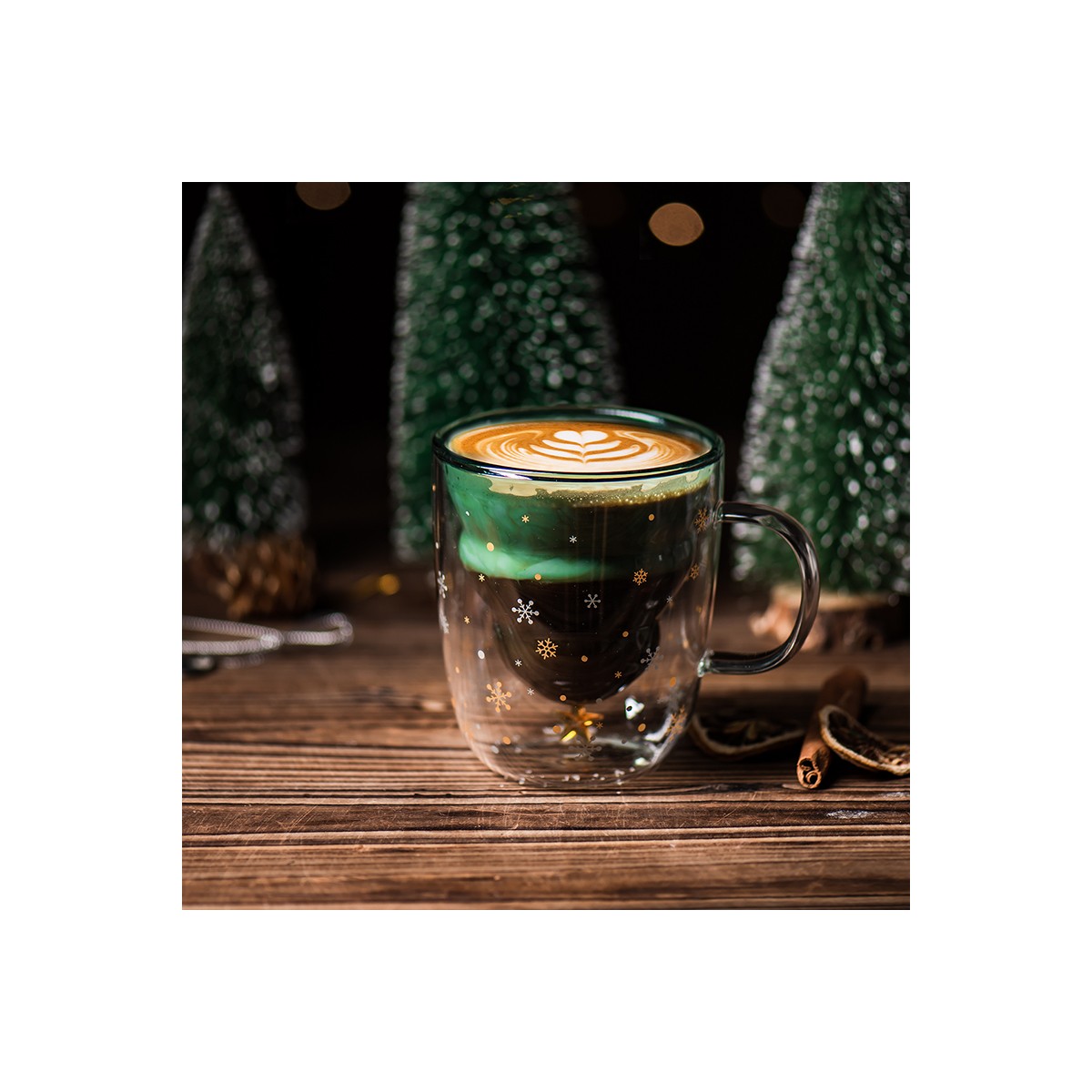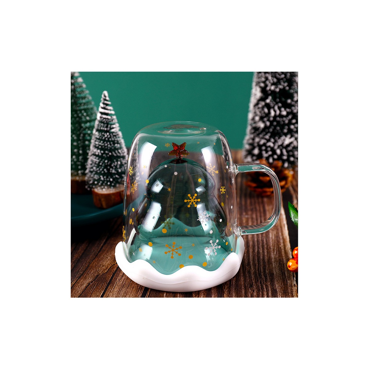 Linan Ware Çift Cidarlı Cam Bardak, Yeni Yıl Çam Ağacı Tasarımlı Kapaklı Kupa 250 ml için 10 değerlendirme