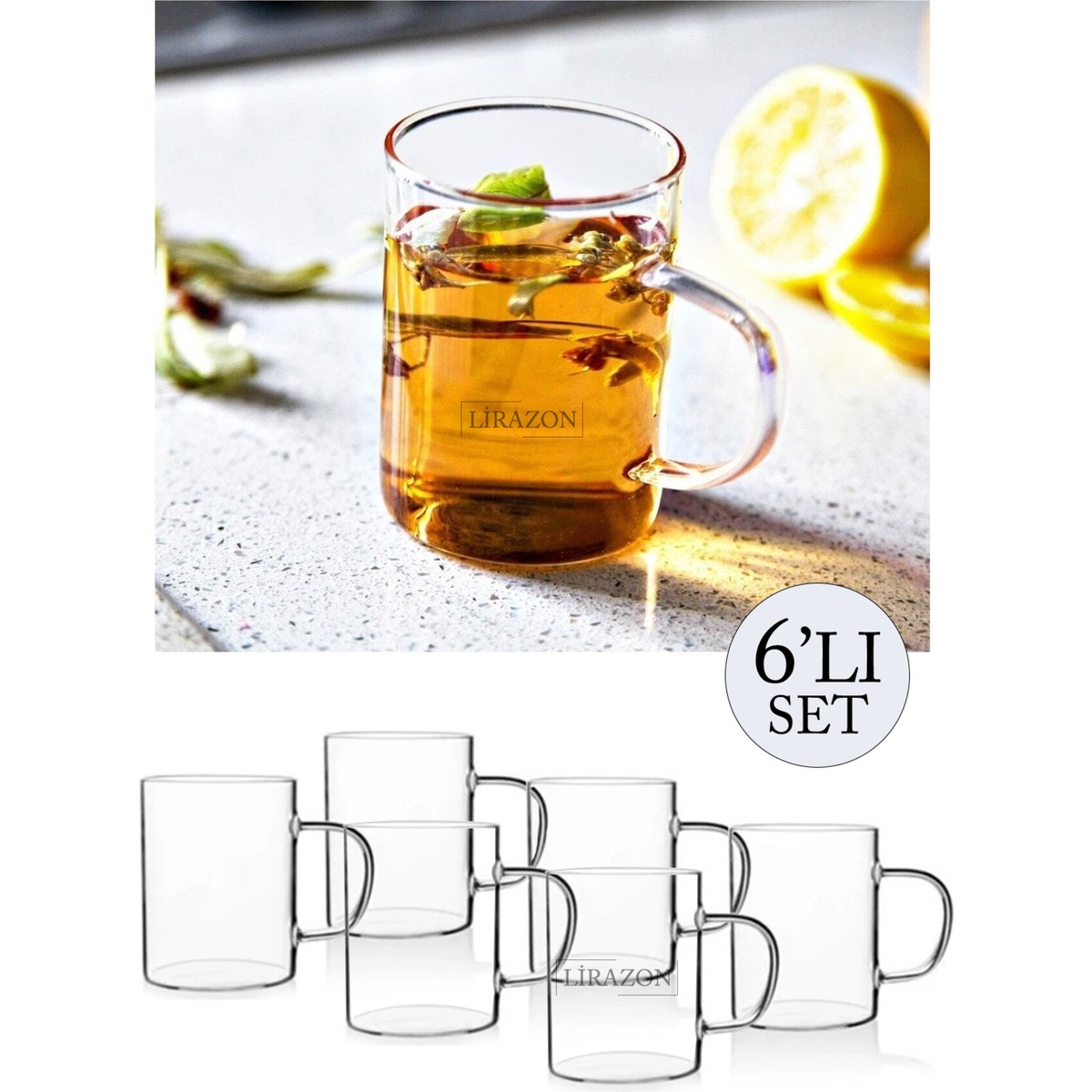 Lirazon 6 ADET Borosilikat Lüx İnce Ateşe Dayanıklı Borosilikat Cam Kupa Bardak 6’lı Kupa Bardak Seti