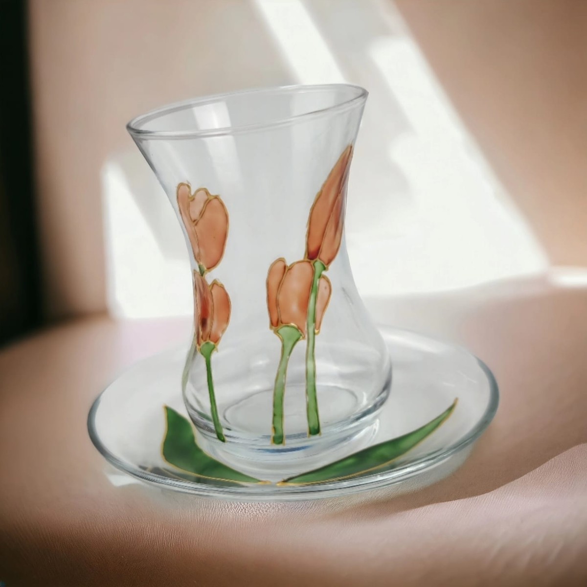 Bu benzersiz ve göz alıcı set, çay saatlerinizi ve özel anlarınızı daha da özel kılacaktır.Bardaklar yüksek kaliteli cam boyaları ile boyanmış olup, solmaz ve toksik değildir.