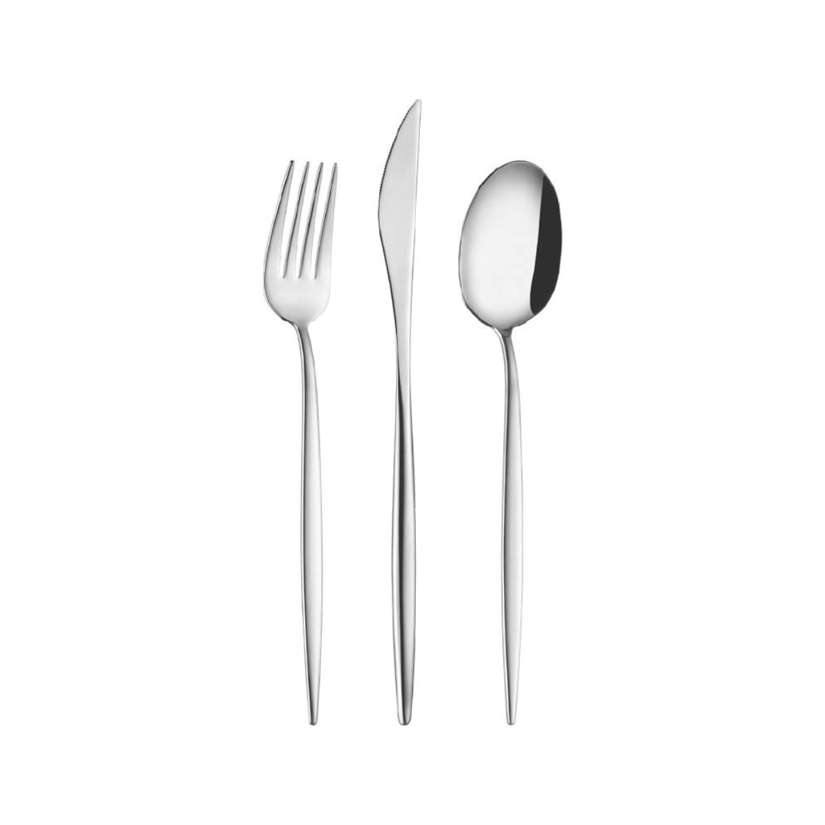 Lugga Ece 6 Kişilik Tatlı Çatal-Kaşık-Bıçak Takımı 18 Parça Takım İçeriği; 6 Adet Tatlı Çatal 177 / 3 mm, 6 Adet Tatlı Kaşık 176 / 3 mm, 6 Adet Tatlı Bıçak 195 / 10 mm Tamamen yerli üretim olan ürünlerimiz 18/10 Paslanmaz Çelikten üretilmiştir. Bulaşık makinesinde yıkanması uygundur.