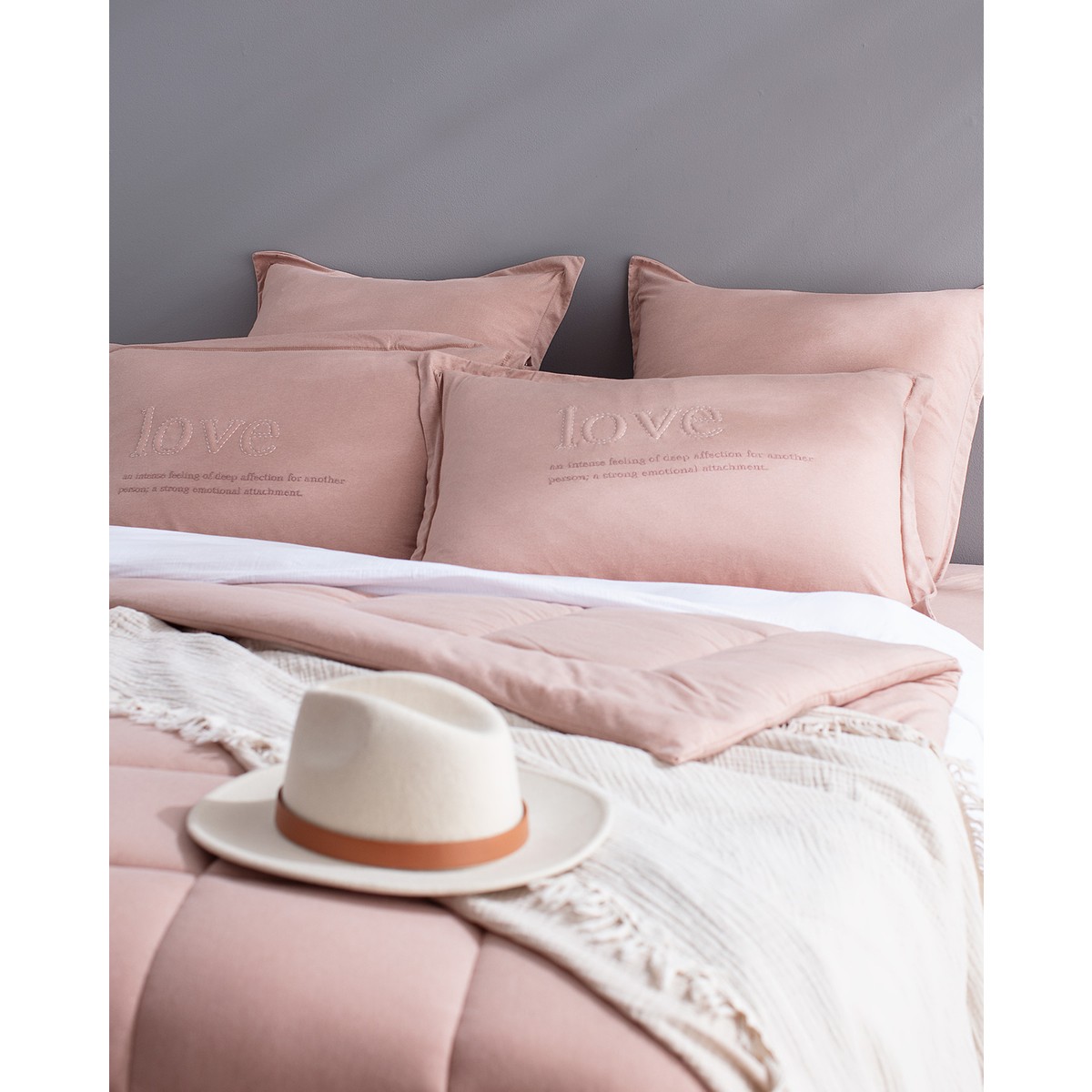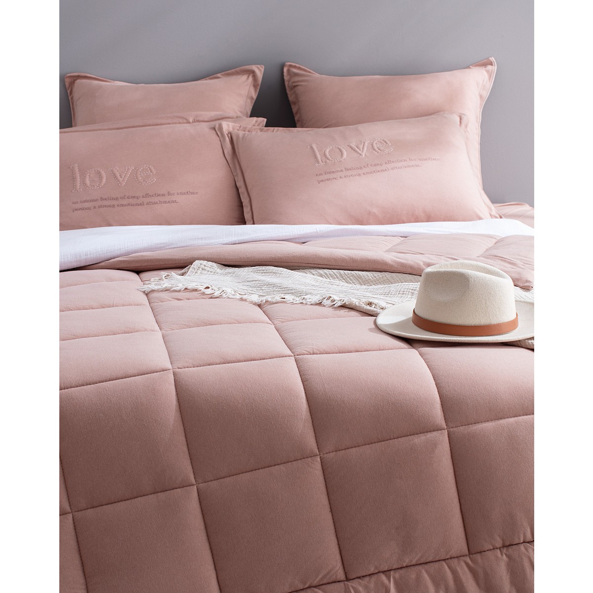 bobigny çift kişilik pamuklu supersoft comforter set – pudra