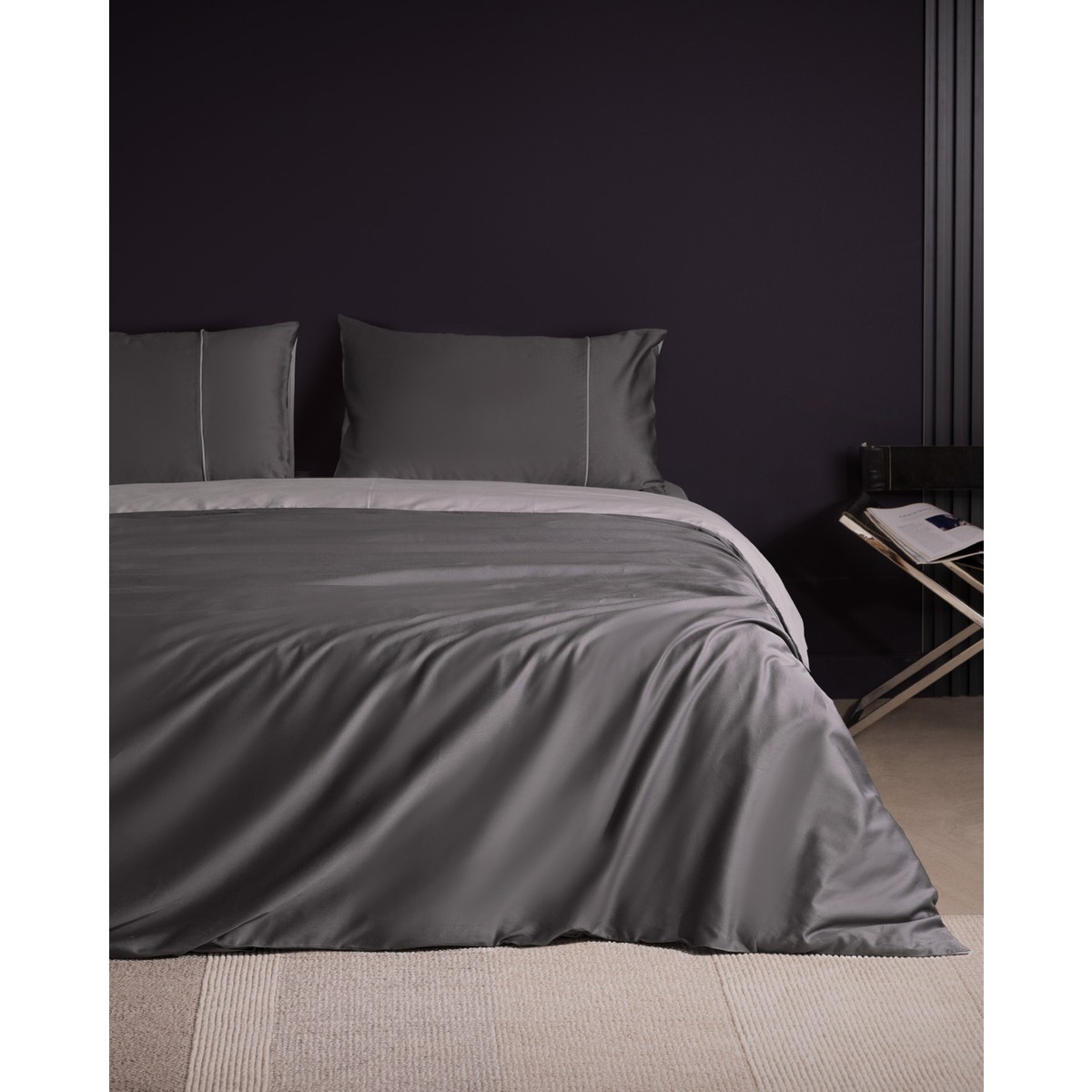 Danton Çift Kişilik Saten Biyeli Düz Boya Nevresim Takımı – Antrasit/Gri