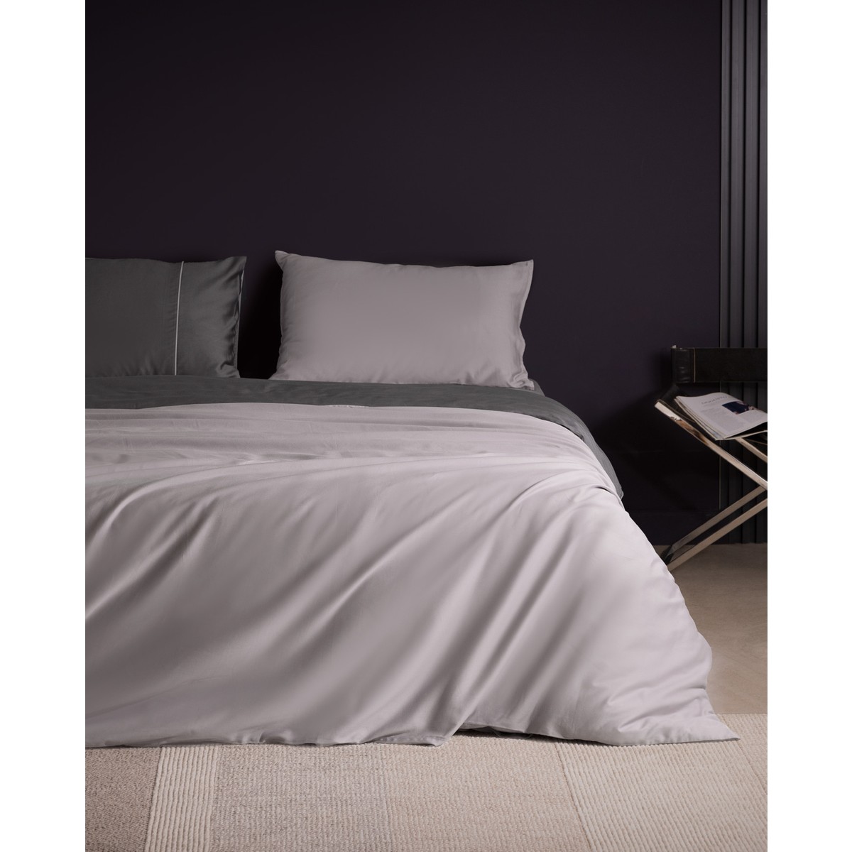 Madame Coco Danton Çift Kişilik Saten %100 Pamuk Biyeli Düz Boya Nevresim Takımı – Antrasit/gri