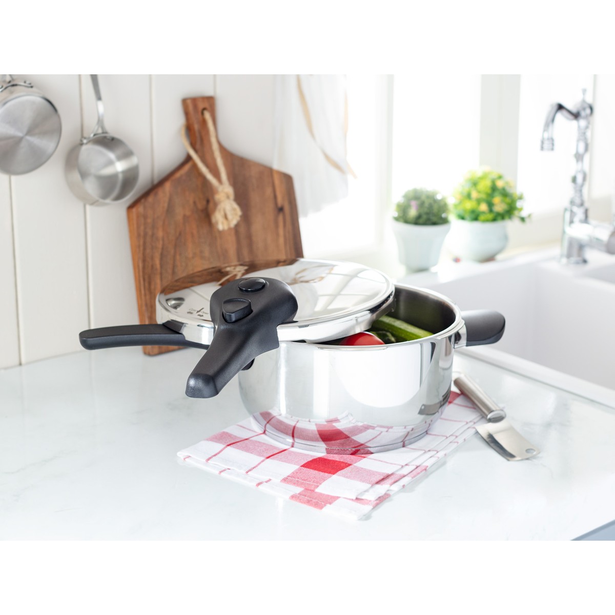 Ürün Açıklaması : Fontaines Düdüklü Tencere Mutfakta hem zamandan hem de enerjiden tasarruf sağlayacak Fontaines Düdüklü Tencere ile pişirmesi uzun zaman alan yiyecekleri çok daha kısa zamanda pişirin. Kapak kilidi, güvenli ve rahat bir pişirme imkânı sağlarken, ısı ve nemini kaybetmeden yüksek basınç altında pişen yemekleriniz ise aromasını ve lezzetini asla kaybetmez. Teknik Özellikler : Ürün Tipi: Paslanmaz Çelik Ölçü: 4 Lt Üretim Yeri: Türkiye Paket İçeriği : Tencere : 1 Adet Kapak : 1 Adet