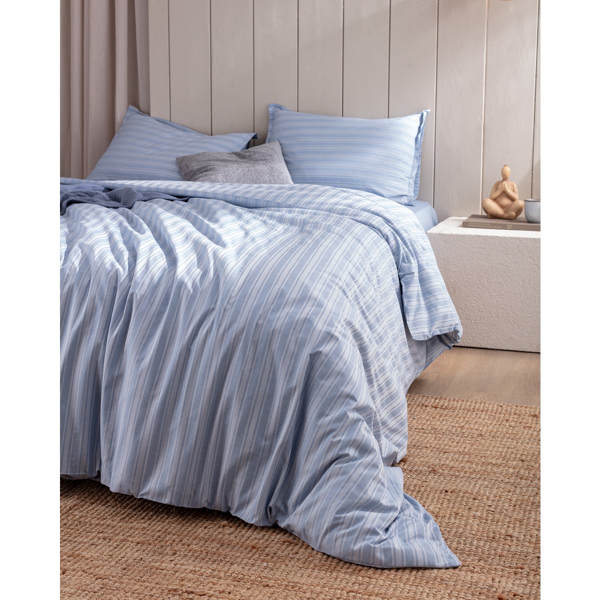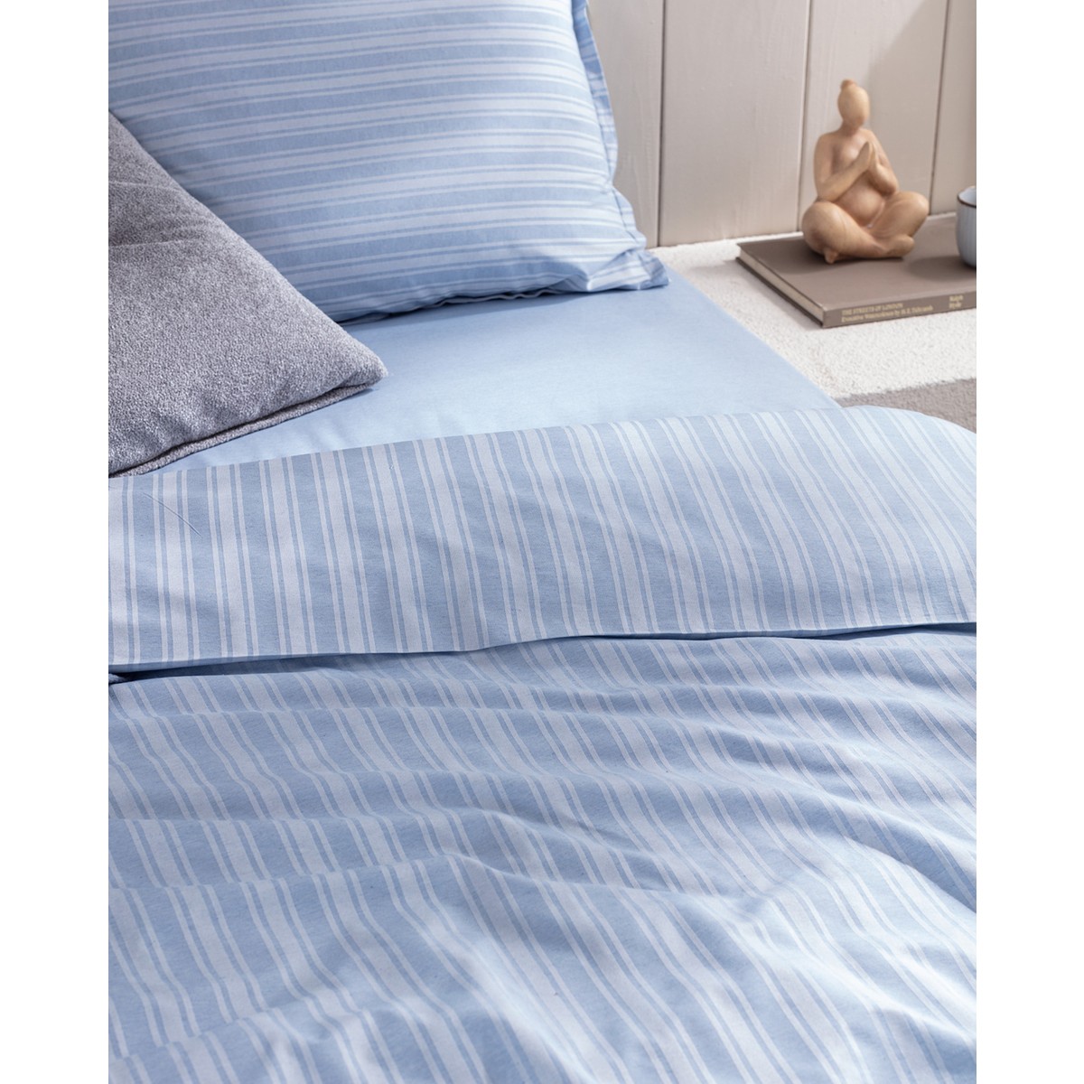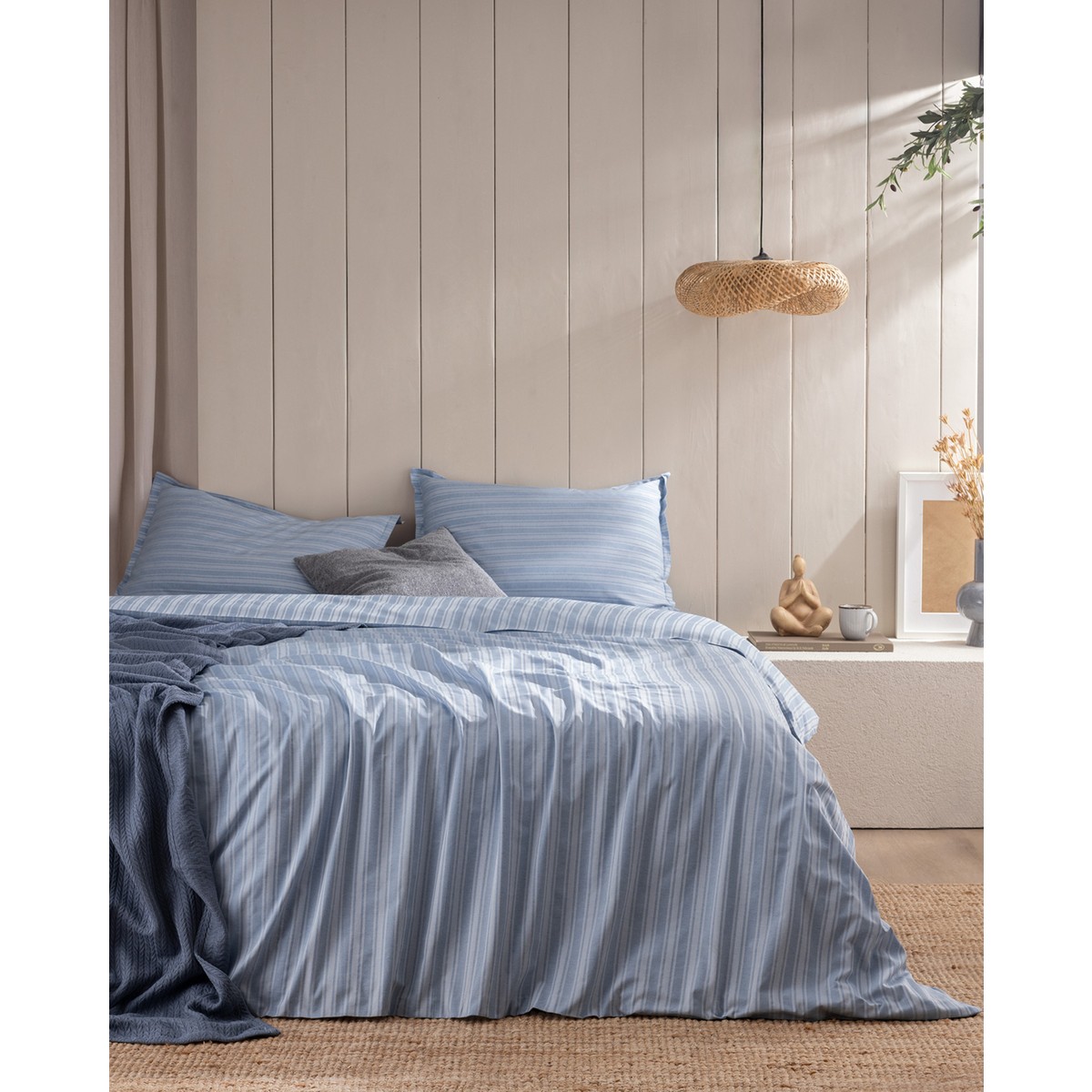 Melicia Çift Kişilik Pamuklu Çizgili Saten Nevresim Takımı – Mavi