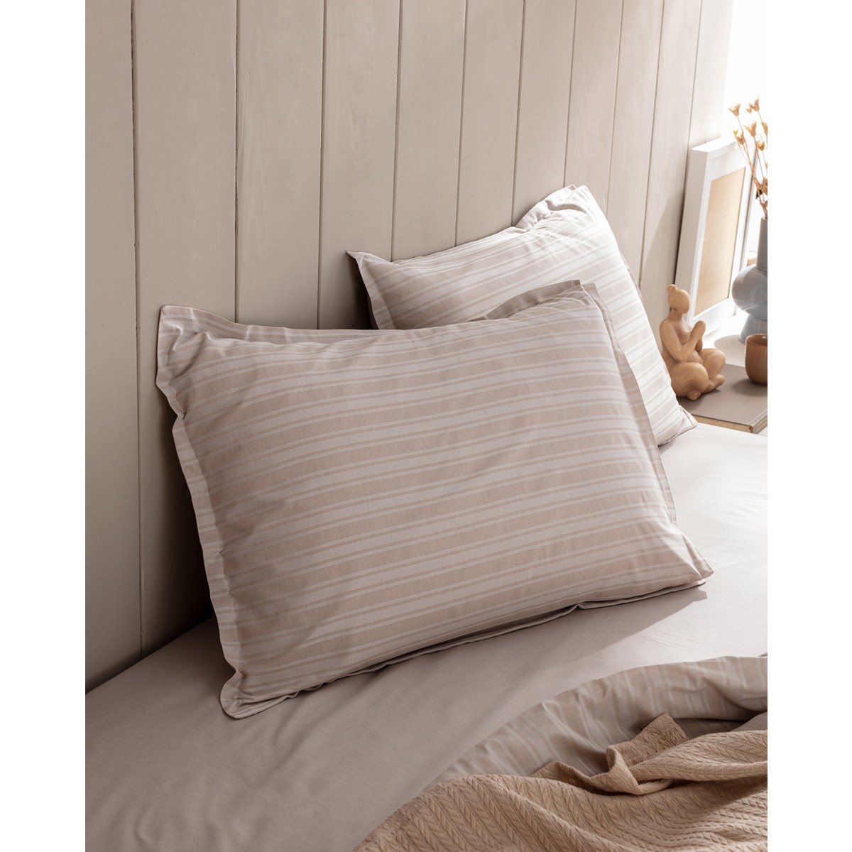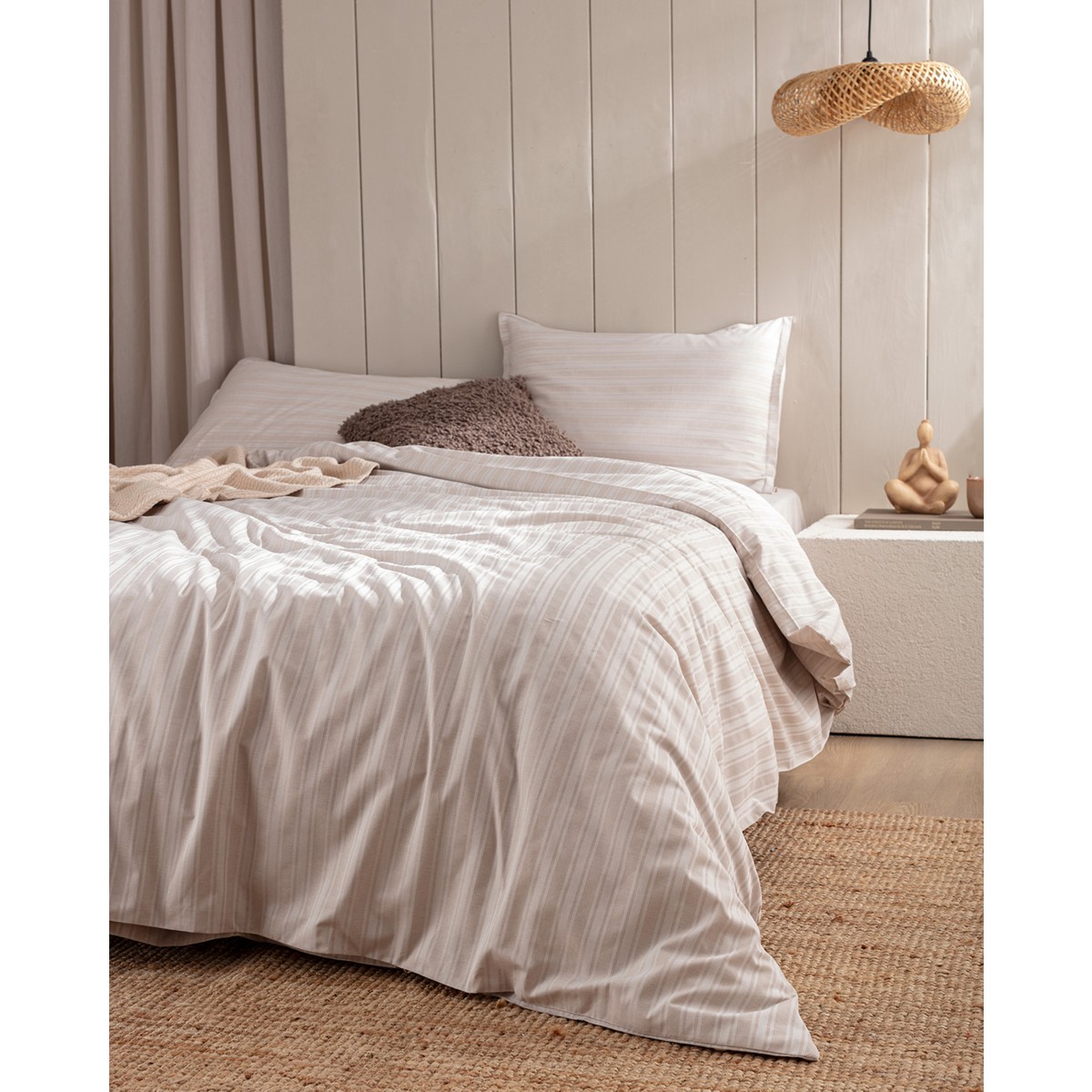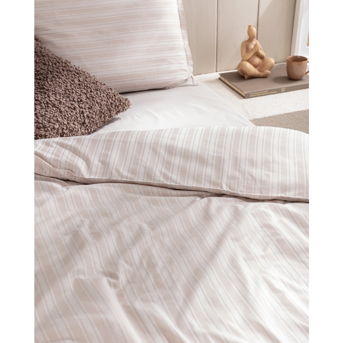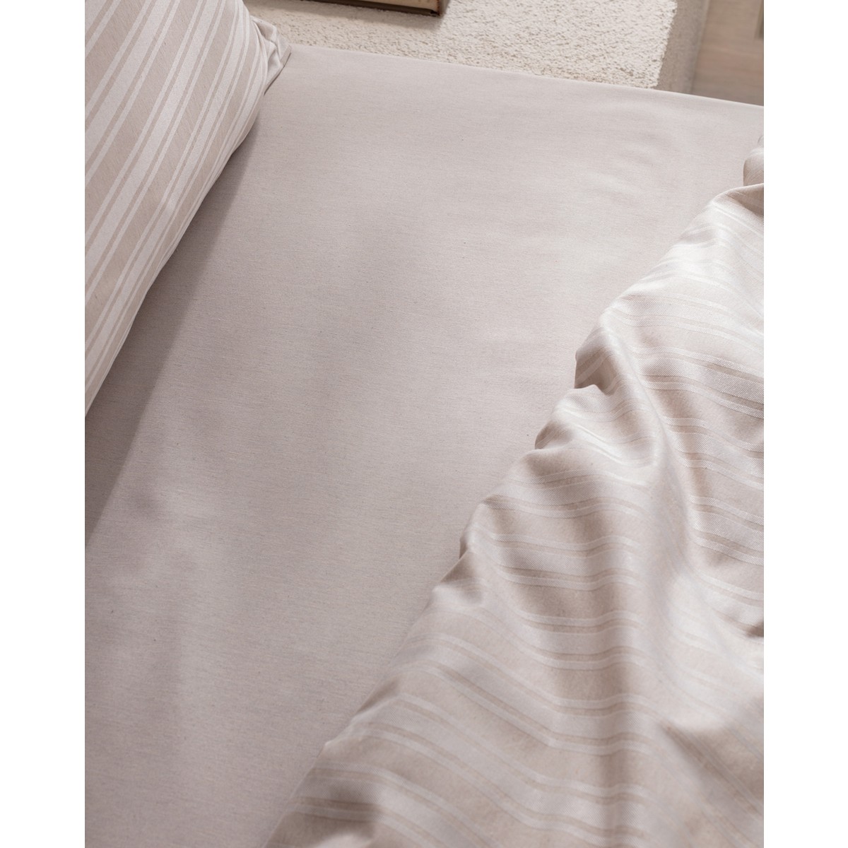 Melicia Tek Kişilik Pamuklu Çizgili Saten Nevresim Takımı – Bej